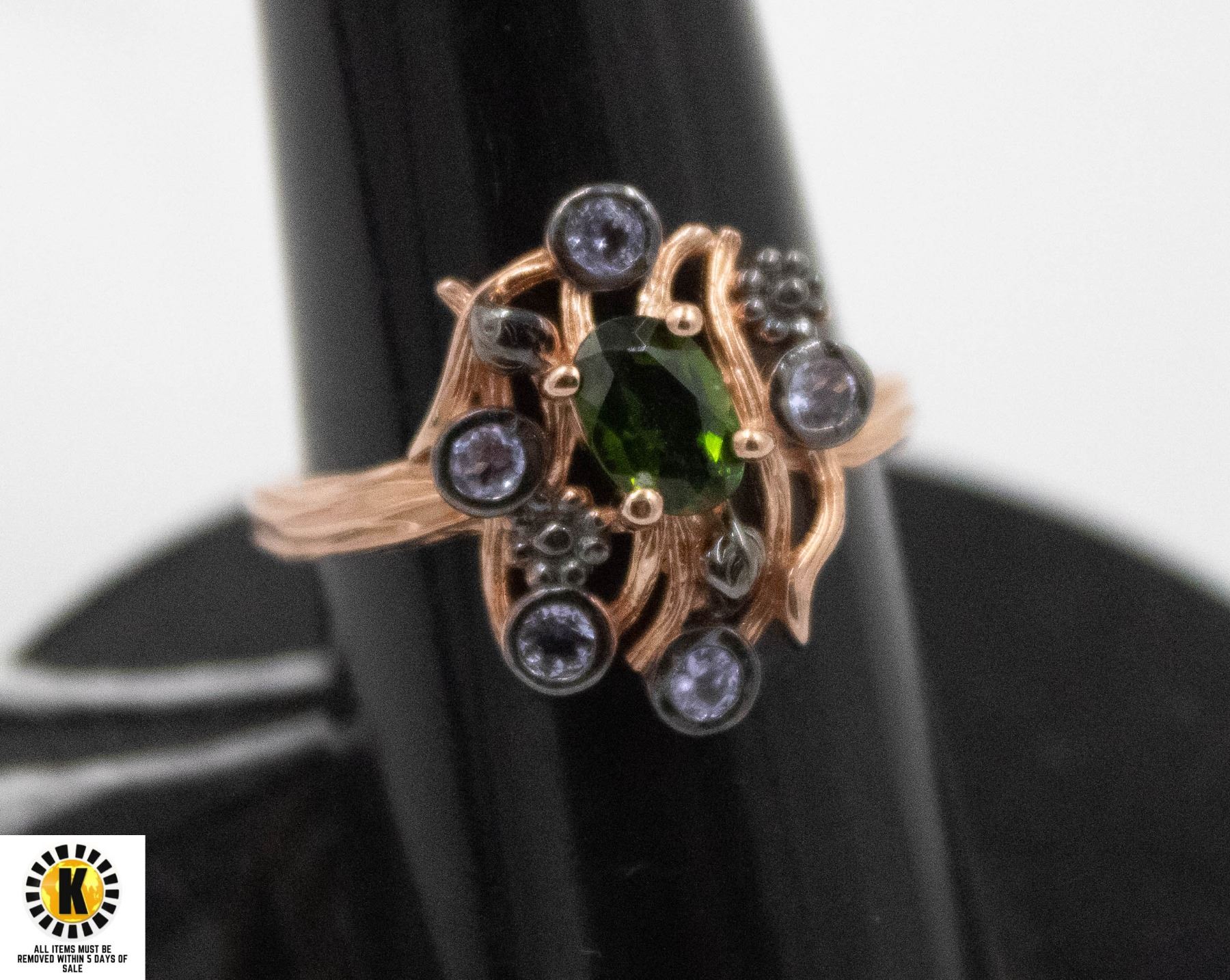 #286-UNHEATED TANZANITE ,CHROM DIOPSIDE RING SIZE