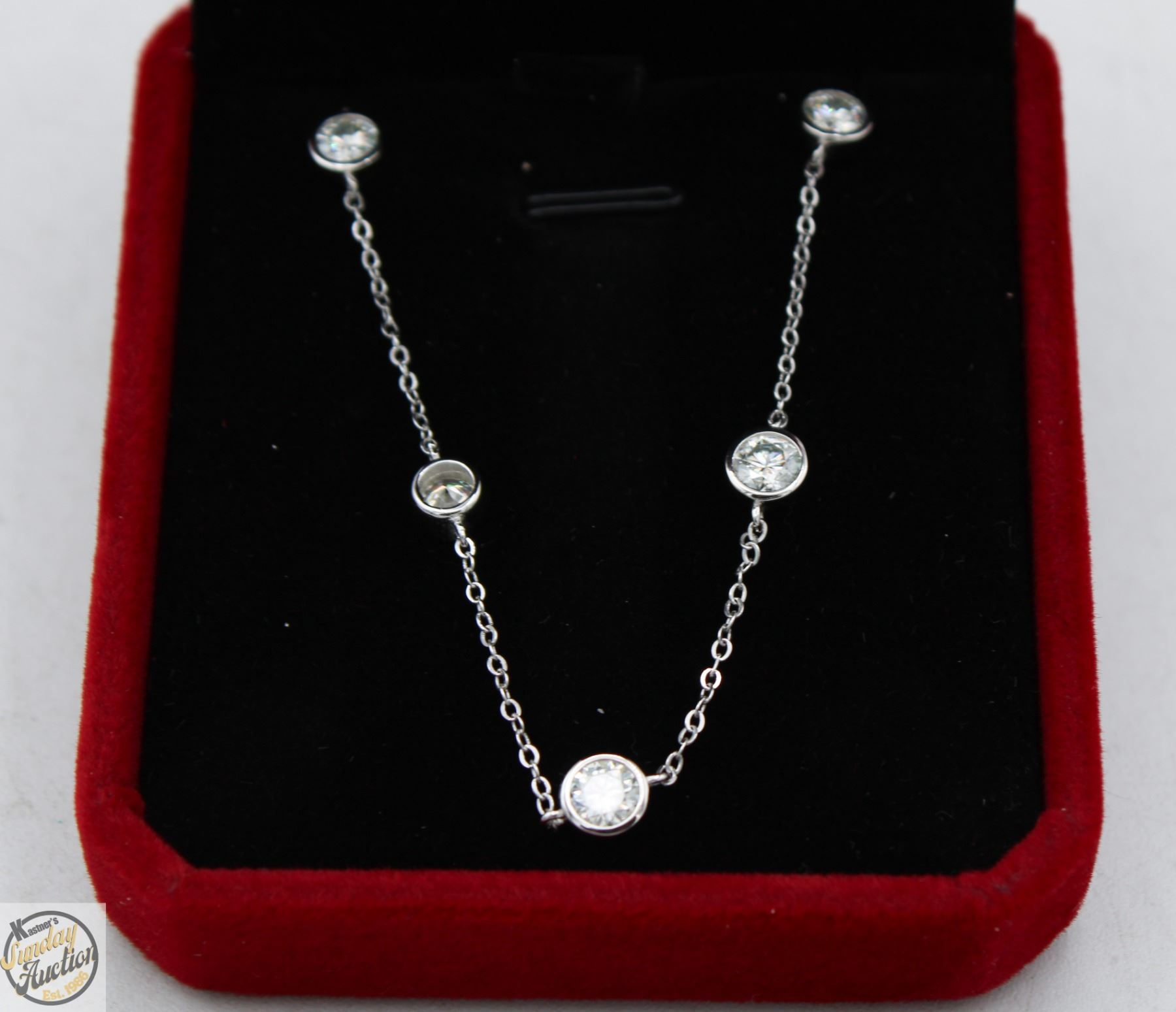 BRILLIANT CUT MOISSANITE STONE VVS FANCY BLUE COLOR WITH 50 ROUND BRILLIANT CUT CUBIC ZIRCONIA SET DUAL HALOS AROUND CENTER WITH SOME IN BALE SET IN 925 SILVER PENDANT RETAIL VALUE $975.00 **ALL ITEMS MUST BE REMOVED BY 5PM SATURDAY, AUGUST 9 2025. ALL REMAINING ITEMS WILL BE SUBJECT TO A $6.00 PER DAY STORAGE CHARGE. ANY ITEMS REMAINING AFTER MONDAY, AUGUST 25TH 2025 WILL BE CONSIDERED FORFEITED. NO REFUNDS WILL BE ISSUED FOR FORFEITED ITEMS. TO SCHEDULE A PICK UP APPOINTMENT CLICK HERE