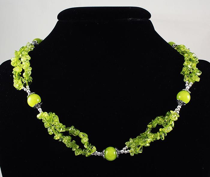 287.57CTW APPLE GREEN CHIPS NECKLACE W/ METAL LOCK **|**|** 19 INCHES LONG FREEFORM CHIP BEAD NECKLACE HANDMADE WITH APPLE GREEN GEMSTONE ; MSRP: $100