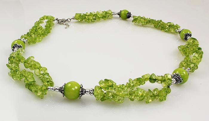 287.57CTW APPLE GREEN CHIPS NECKLACE W/ METAL LOCK