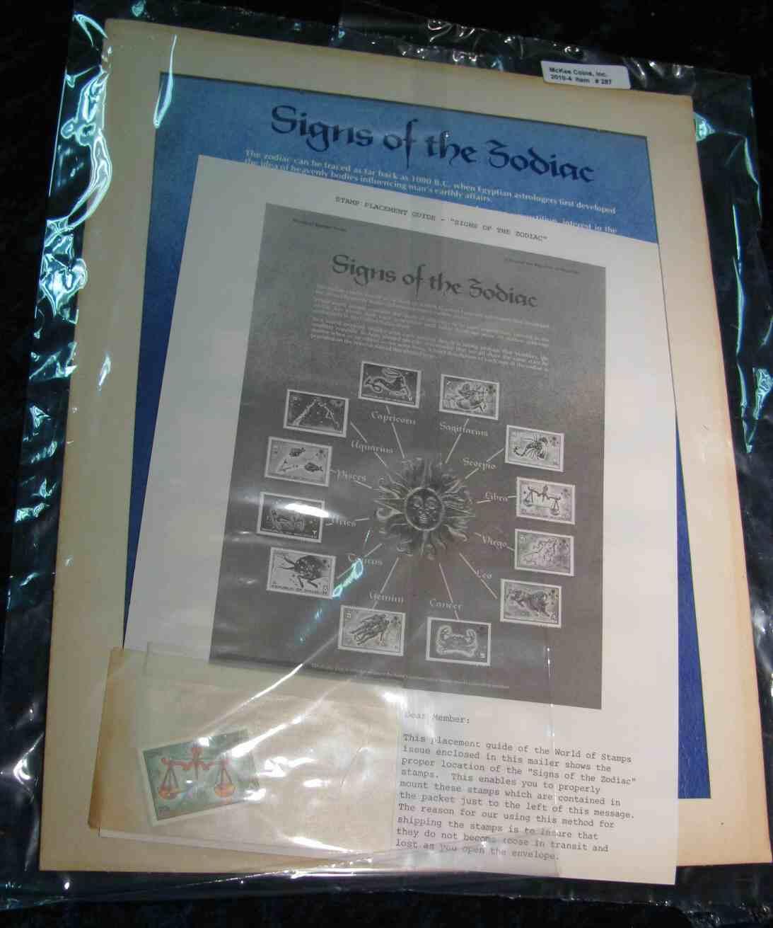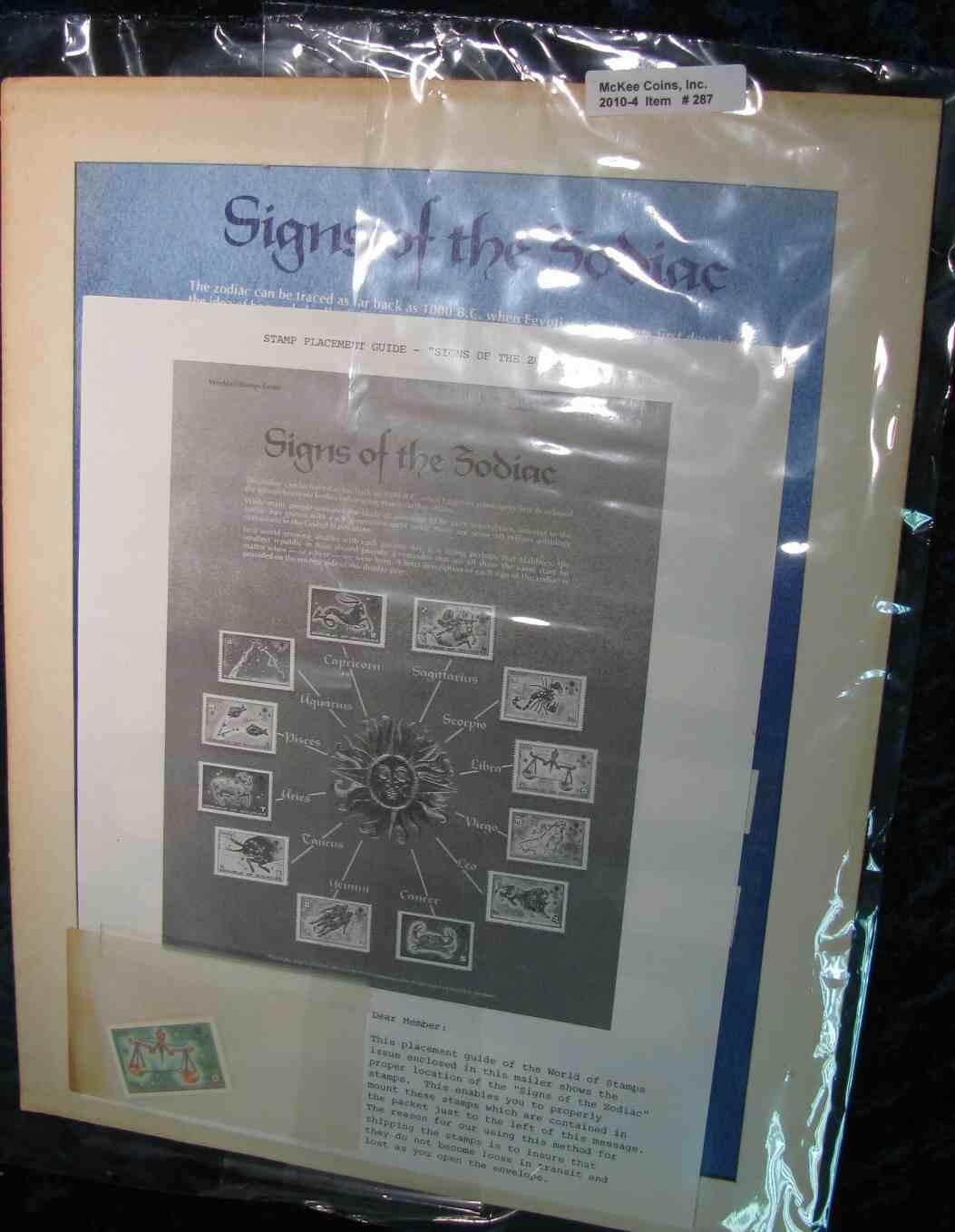 287. "Signs of the Zodiac" Republic of the Maldives Stamp Series. Mint uncancelled stamps in a poster which is mountable.