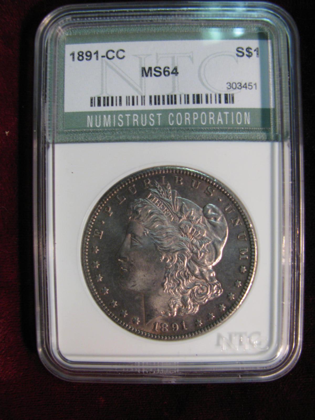 2878. 1891 CC Morgan Type Silver Dollar NTC MS64. Light Toning.