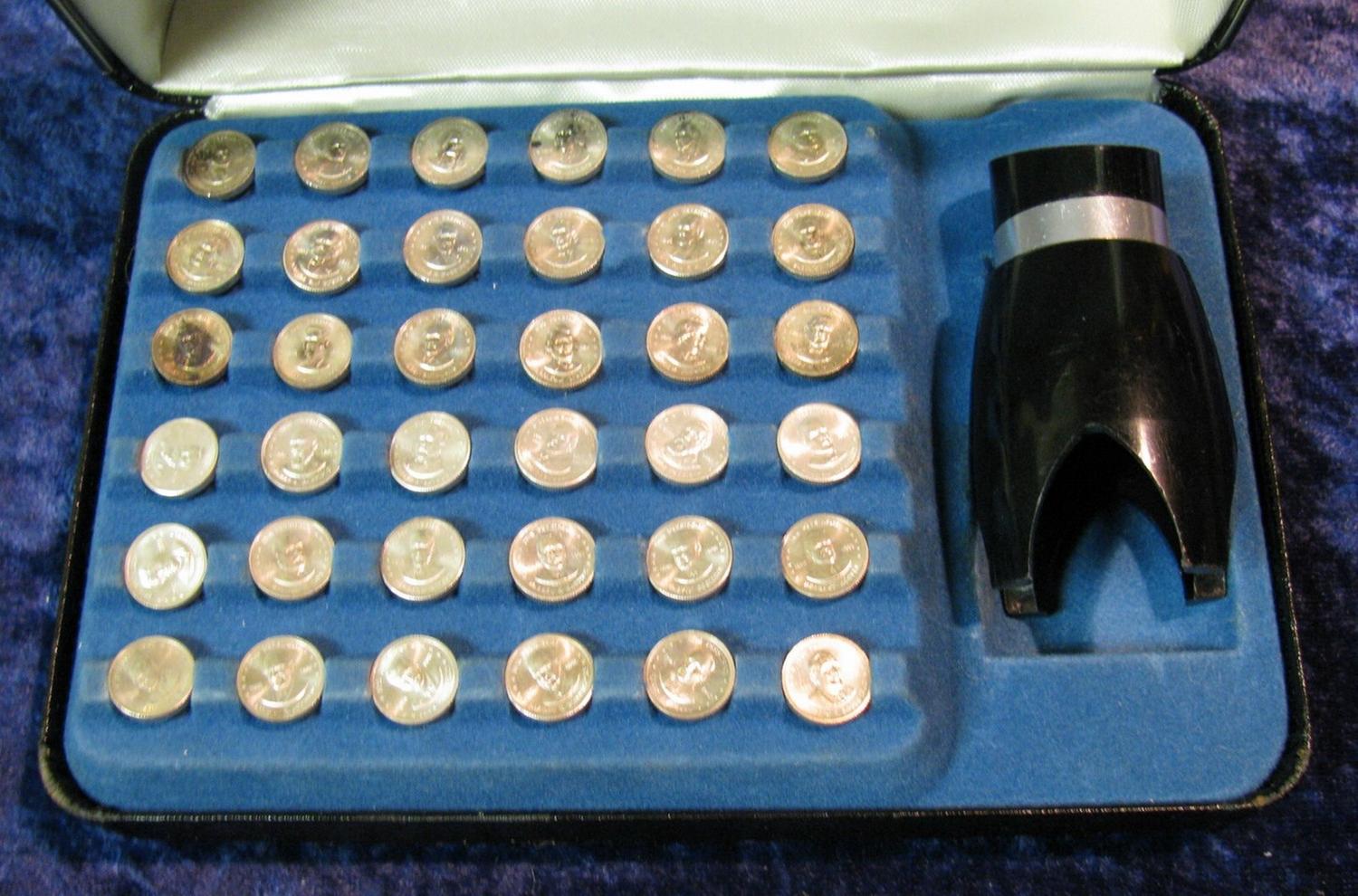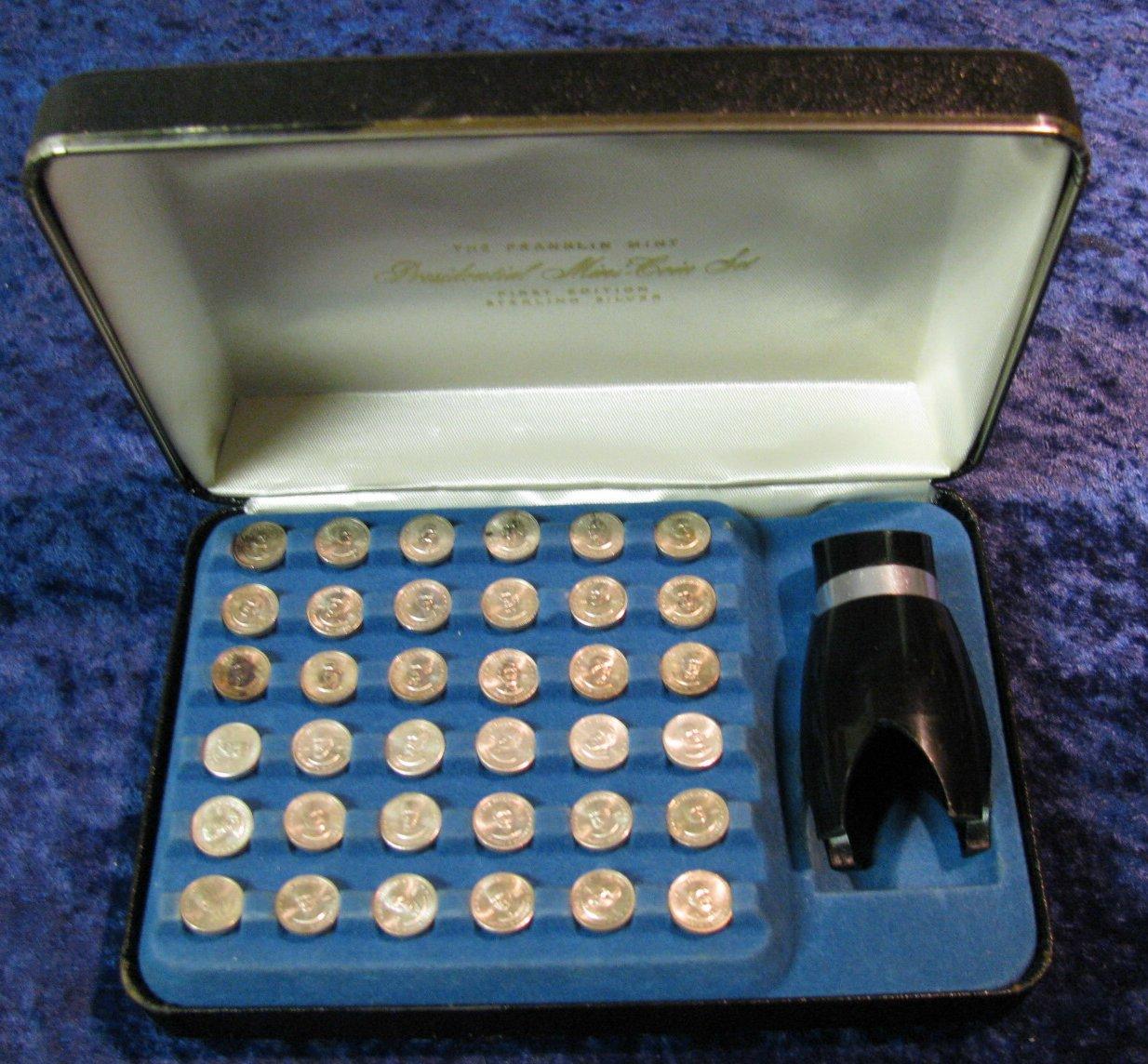 288. (36) Miniature Sterling Silver Presidential Medals in special case with magnifying glass. Minted by the Franklin Mint.