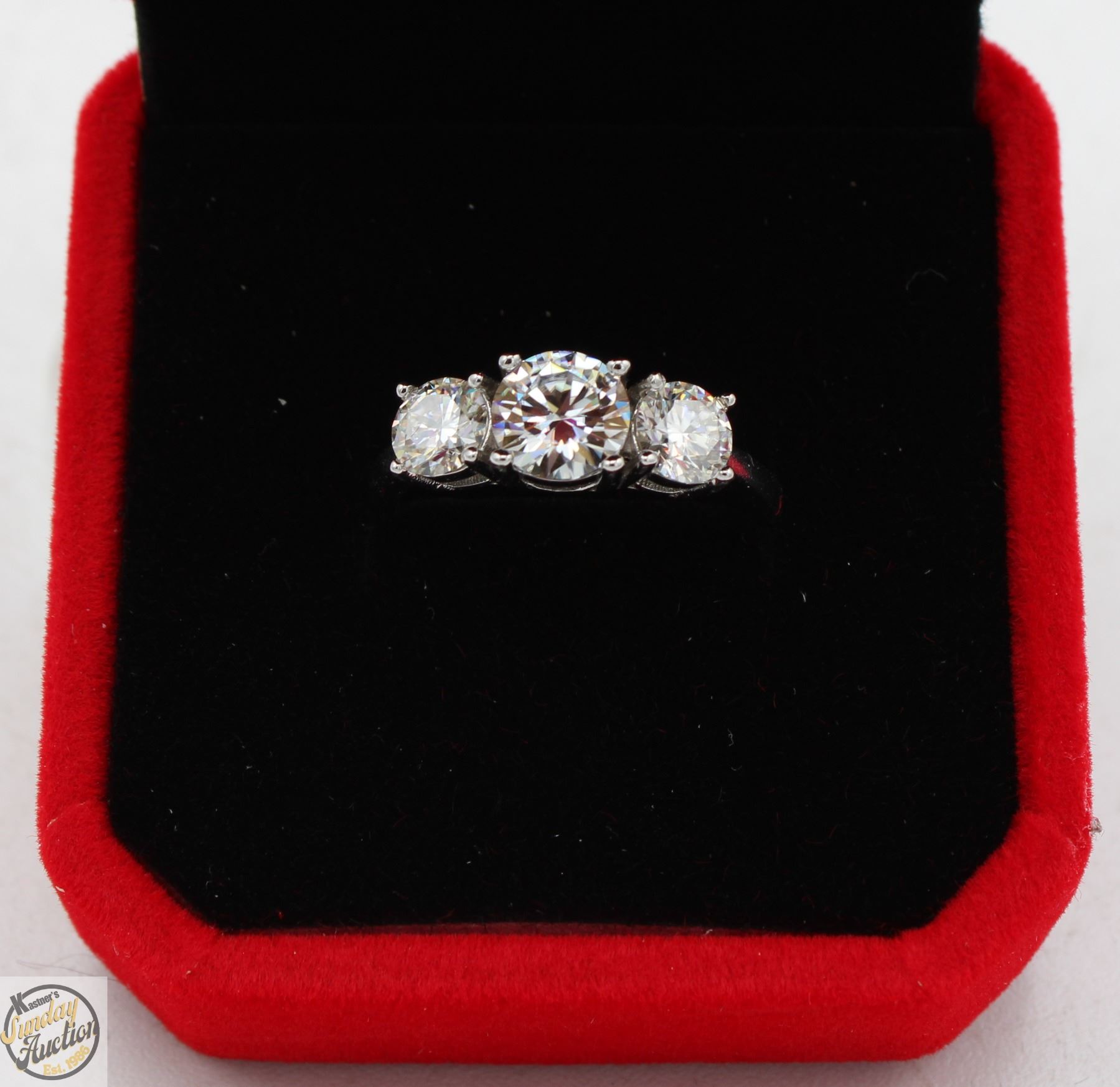 CUT MOISSANITE STONES VVS D COLOR SET WITH 1.00 CT MOISSANITE SET IN CENTER WITH 0.50 CT SET ON EITHER SIDE SET IN 925 SILVER RING SIZE 7.5 RETAIL VALUE $975.00 **ALL ITEMS MUST BE REMOVED BY 5PM SATURDAY, AUGUST 2ND 2025. ALL REMAINING ITEMS WILL BE SUBJECT TO A $6.00 PER DAY STORAGE CHARGE. ANY ITEMS REMAINING AFTER MONDAY, AUGUST 18TH 2025 WILL BE CONSIDERED FORFEITED. NO REFUNDS WILL BE ISSUED FOR FORFEITED ITEMS. TO SCHEDULE A PICK UP APPOINTMENT CLICK HERE