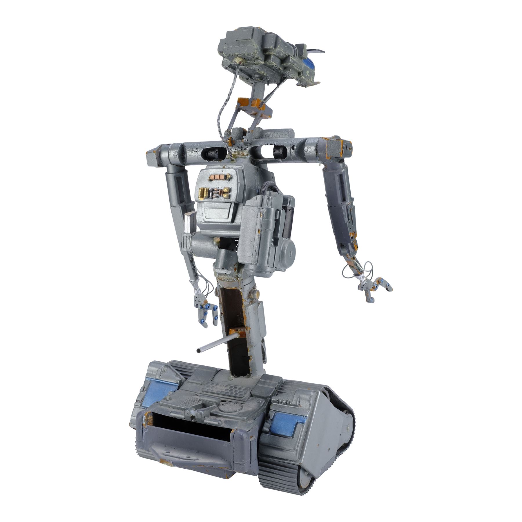 SHORT CIRCUIT 2 (1988) - Johnny 5 Robot Toy - A Johnny 5 robot toy from Kenneth Johnson's Short Circuit 2. Inventor Ben Jahveri (Fisher Stevens) street-vended his miniature robot toys. One wandering miniature, Johnny 5, caught the attention of Sandy Banatoni (Cynthia Gibb), prompting her to order 1,000 of the toys. The film was nominated for Saturn Awards for Best Science Fiction Film and Best Special Effects.