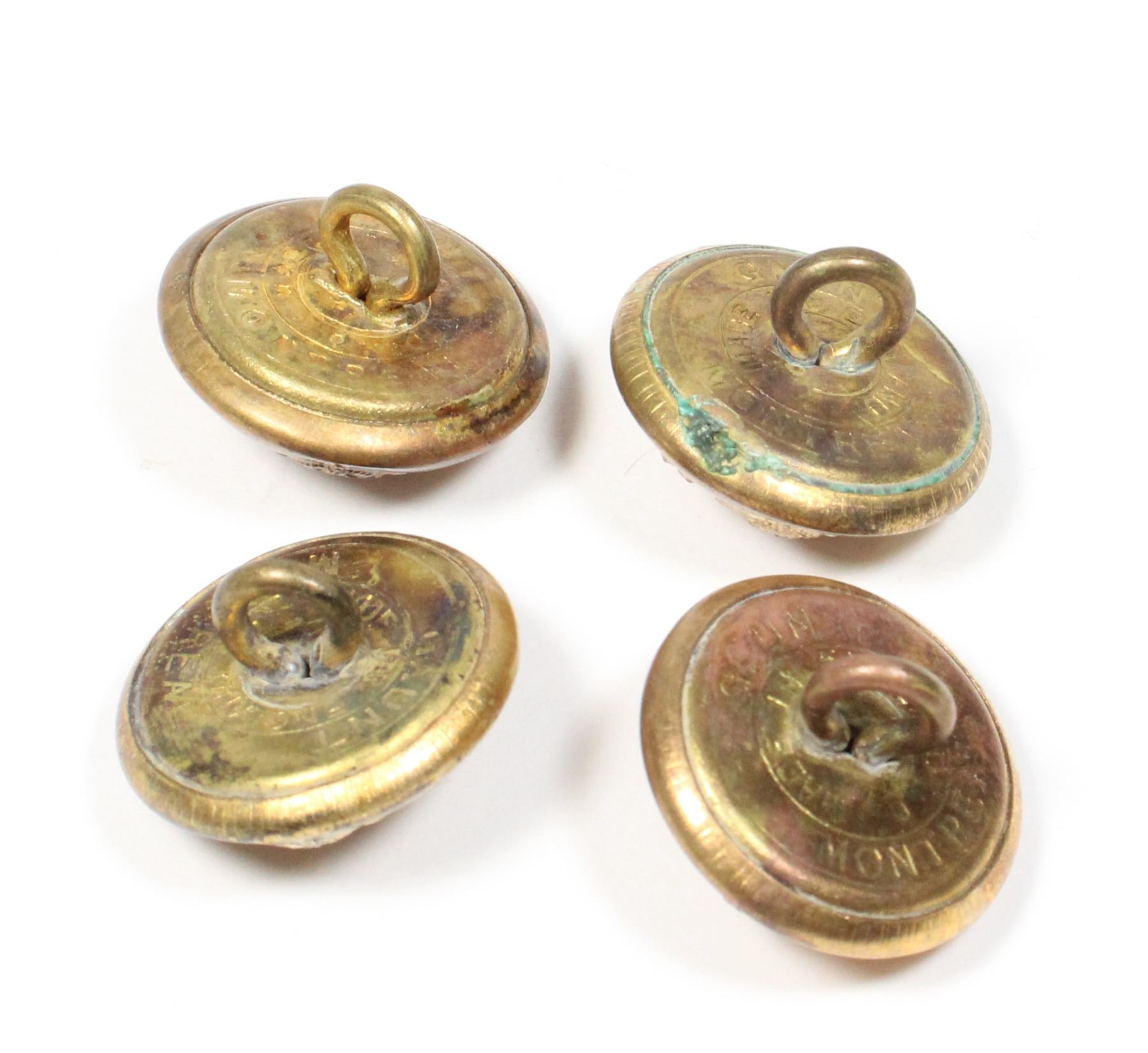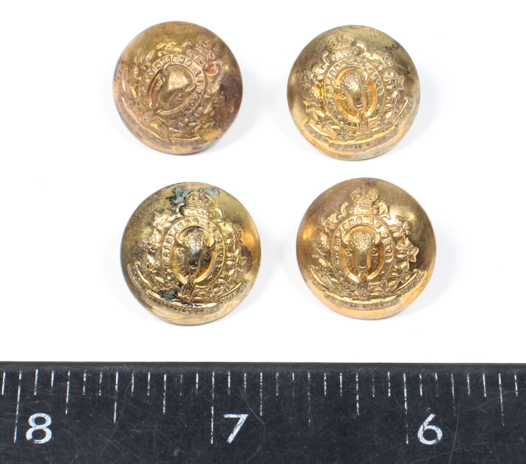 MEDIUM SIZED KINGS CROWN 1940'S RCMP BUTTONS-UNMARKED ON REVERSE . EARLY ROYAL CANADIAN MOUNTED POLICE INSIGNIA