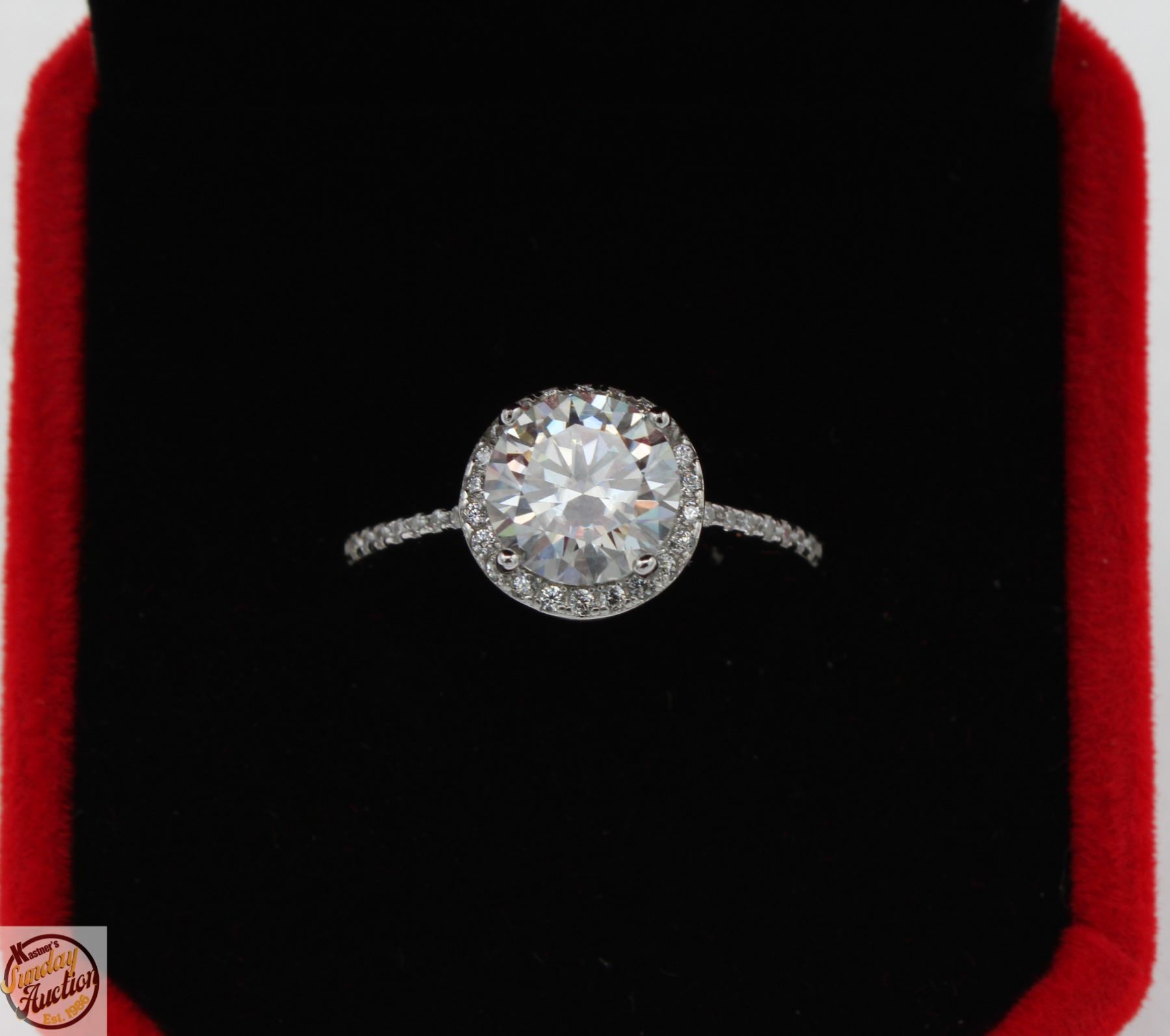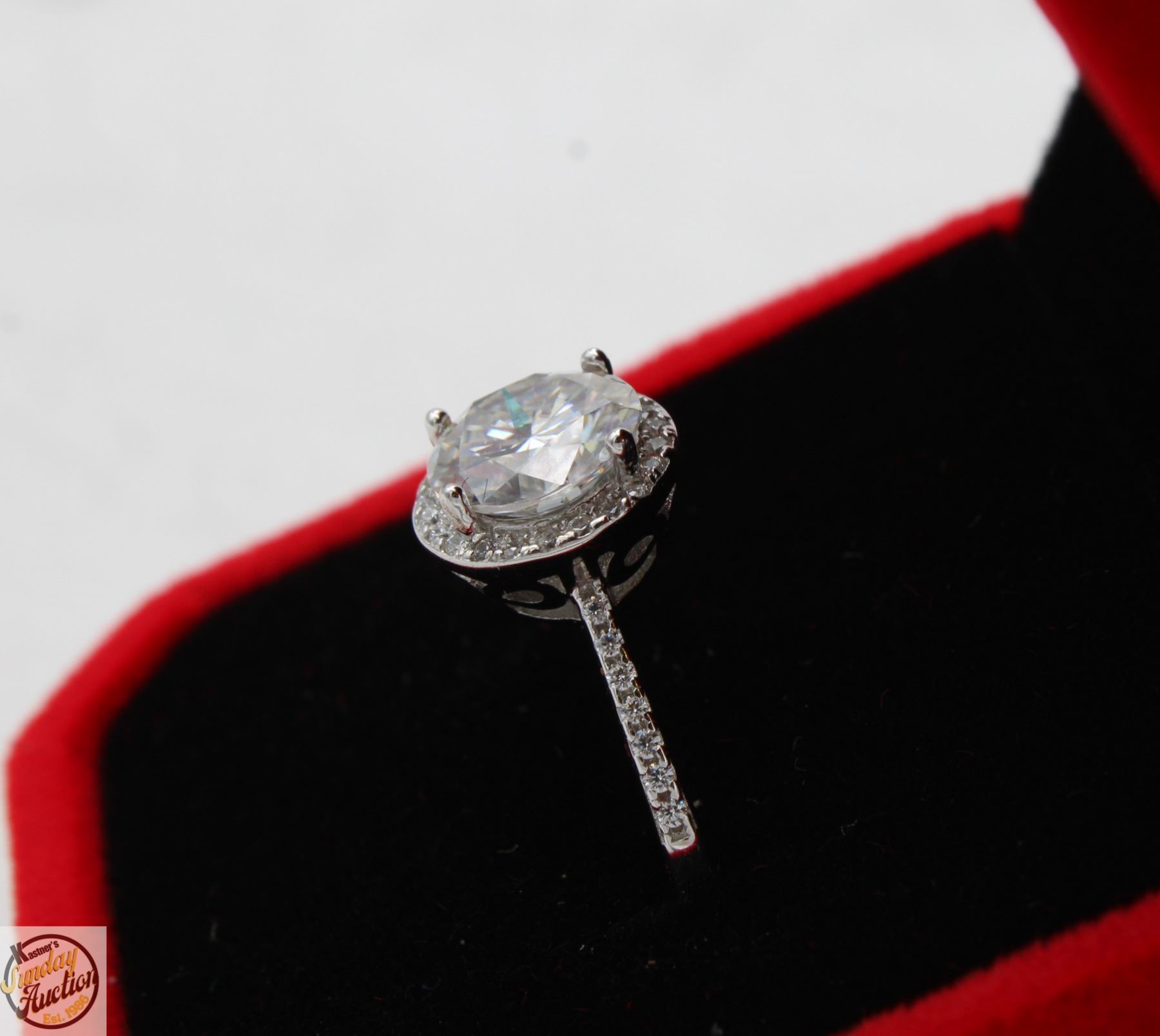 CUT MOISSANITE STONE VVS D COLOR WITH 35 ROUND BRILLIANT CUT CUBIC ZIRCONIA SET IN ROUND HALO AND IN SHANKS SET IN 925 SILVER RING SIZE 7 RETAIL VALUE $1,050.00**ALL ITEMS MUST BE REMOVED BY 5PM SATURDAY, JULY 19TH 2025. ALL REMAINING ITEMS WILL BE SUBJECT TO A $6.00 PER DAY STORAGE CHARGE. ANY ITEMS REMAINING AFTER MONDAY, AUGUST 4TH, 2025 WILL BE CONSIDERED FORFEITED. NO REFUNDS WILL BE ISSUED FOR FORFEITED ITEMS. TO SCHEDULE A PICK UP APPOINTMENT CLICK HERE