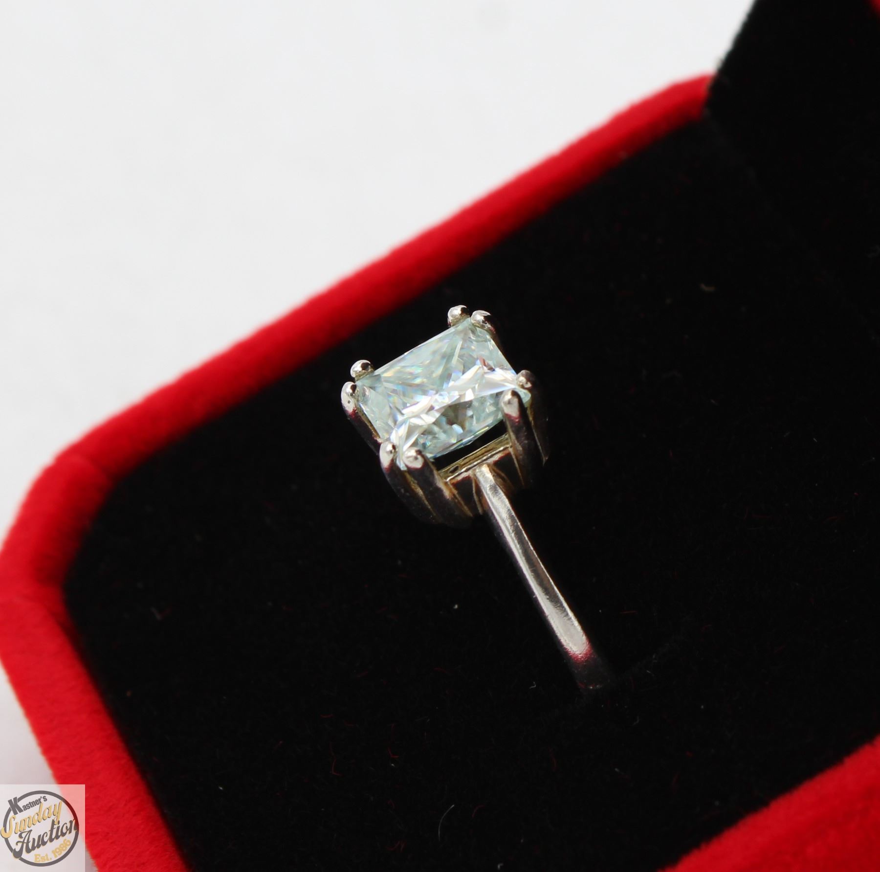 PRINCESS CUT BRILLIANT CUT MOISSANITE STONE VVS D COLOR SET IN 8 CLAW HEAD SET IN 925 SILVER RING SIZE 6.75 RETAIL VALUE $975.00 **ALL ITEMS MUST BE REMOVED BY 5PM SATURDAY, JULY 26th 2025. ALL REMAINING ITEMS WILL BE SUBJECT TO A $6.00 PER DAY STORAGE CHARGE. ANY ITEMS REMAINING AFTER MONDAY, AUGUST 11TH 2025 WILL BE CONSIDERED FORFEITED. NO REFUNDS WILL BE ISSUED FOR FORFEITED ITEMS. TO SCHEDULE A PICK UP APPOINTMENT CLICK HERE