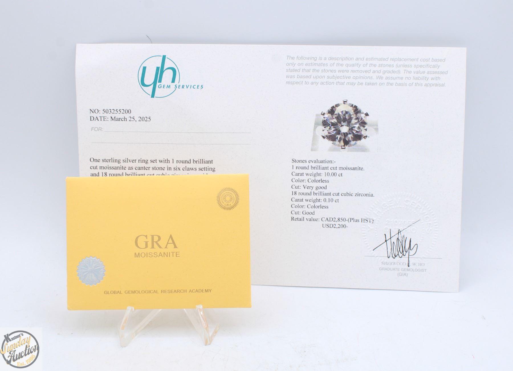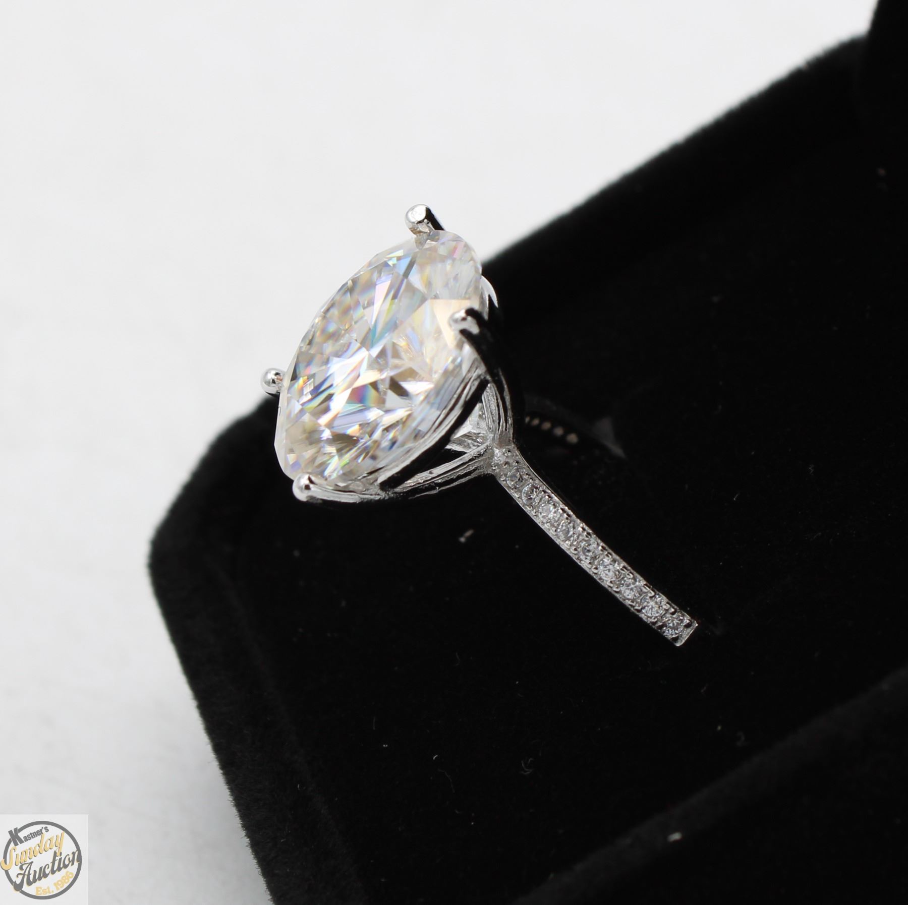 CUT MOISSANITE STONE VVS D COLOR WITH 18 ROUND BRILLIANT CUT CUBIC ZIRCONIA AND SET IN 925 SILVER RING SIZE 7 RETAIL VALUE $2,850.00 **ALL ITEMS MUST BE REMOVED BY 5PM SATURDAY, JULY 26th 2025. ALL REMAINING ITEMS WILL BE SUBJECT TO A $6.00 PER DAY STORAGE CHARGE. ANY ITEMS REMAINING AFTER MONDAY, AUGUST 11TH 2025 WILL BE CONSIDERED FORFEITED. NO REFUNDS WILL BE ISSUED FOR FORFEITED ITEMS. TO SCHEDULE A PICK UP APPOINTMENT CLICK HERE