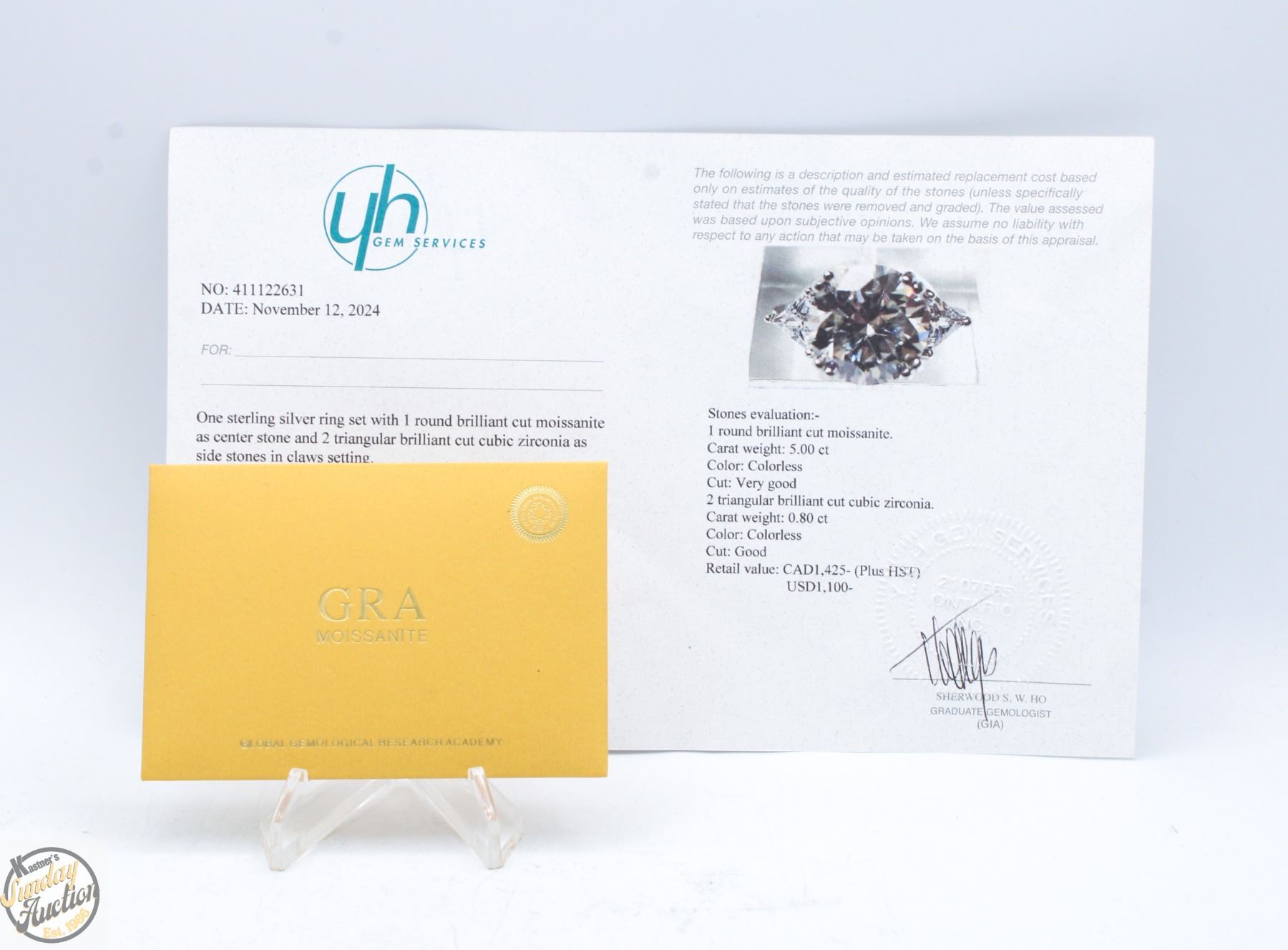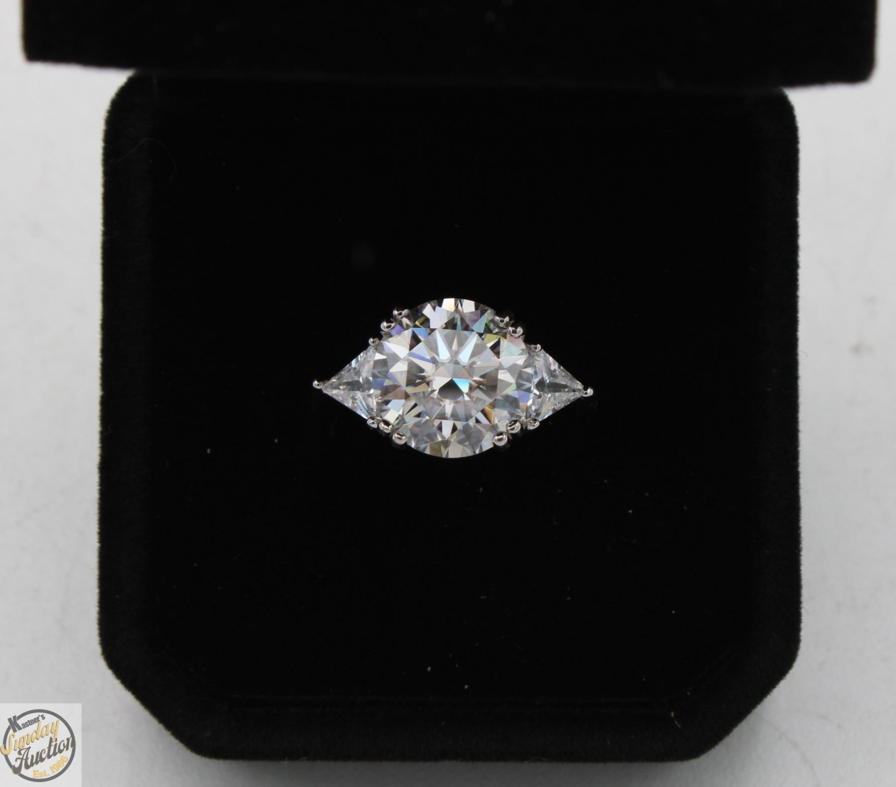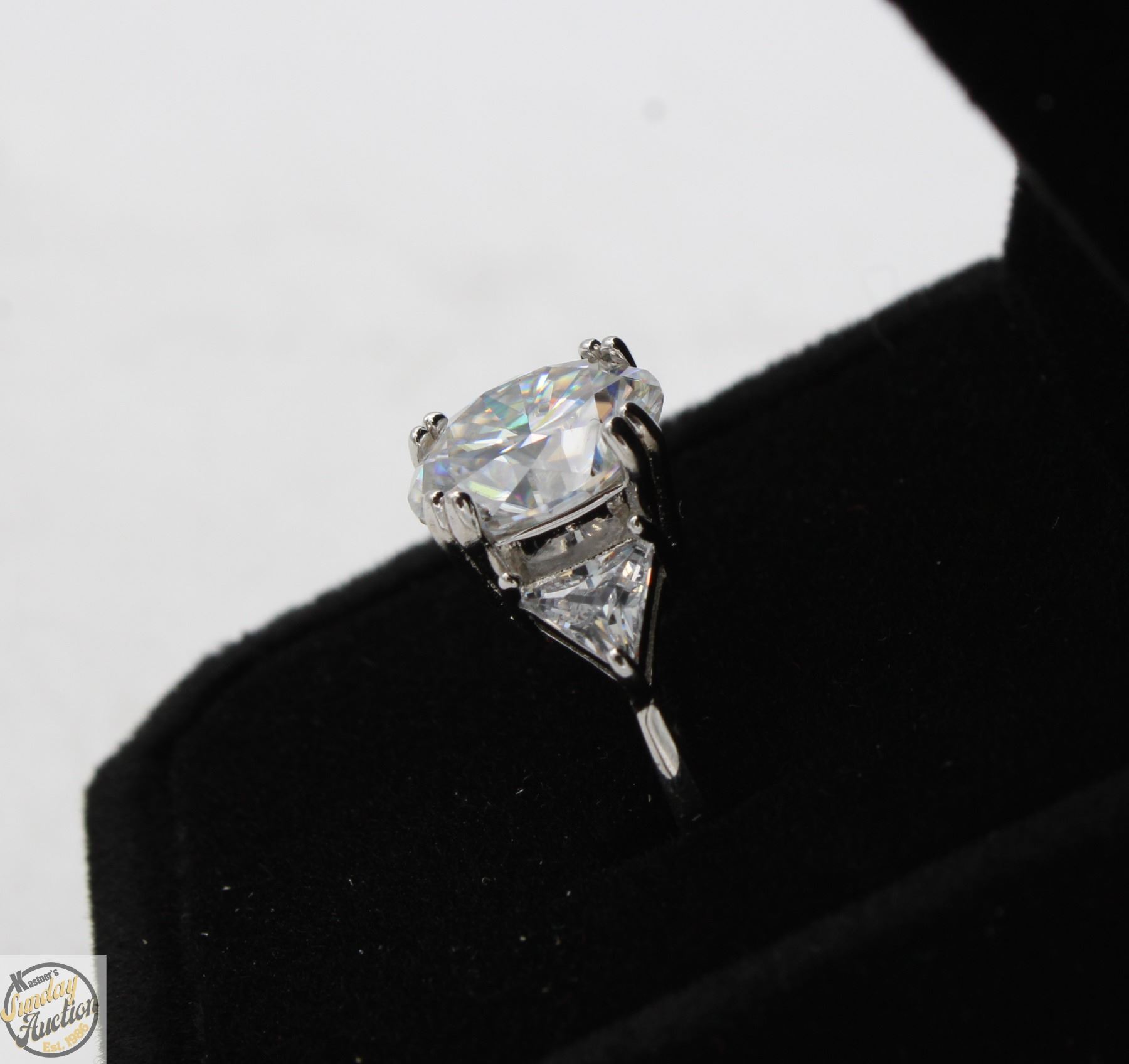 CUT MOISSANITE STONE VVS D COLOR SET IN CENTER WITH 2 TRIANGULAR BRILLIANT CUT CUBIC ZIRCONIA AND SET IN 925 SILVER RING SIZE 7.25 RETAIL VALUE $1,425.00**ALL ITEMS MUST BE REMOVED BY 5PM SATURDAY, JULY 19TH 2025. ALL REMAINING ITEMS WILL BE SUBJECT TO A $6.00 PER DAY STORAGE CHARGE. ANY ITEMS REMAINING AFTER MONDAY, AUGUST 4TH, 2025 WILL BE CONSIDERED FORFEITED. NO REFUNDS WILL BE ISSUED FOR FORFEITED ITEMS. TO SCHEDULE A PICK UP APPOINTMENT CLICK HERE