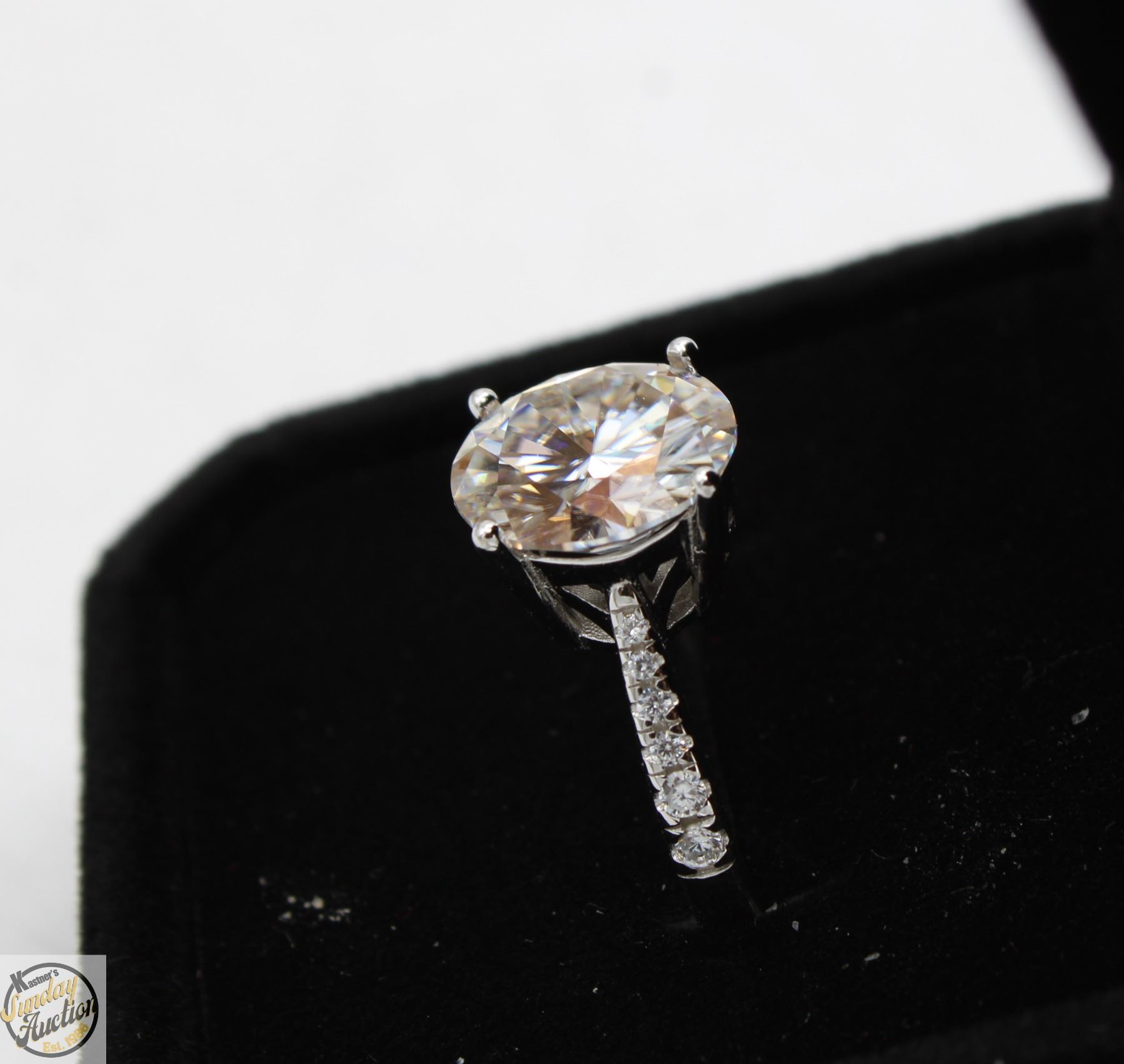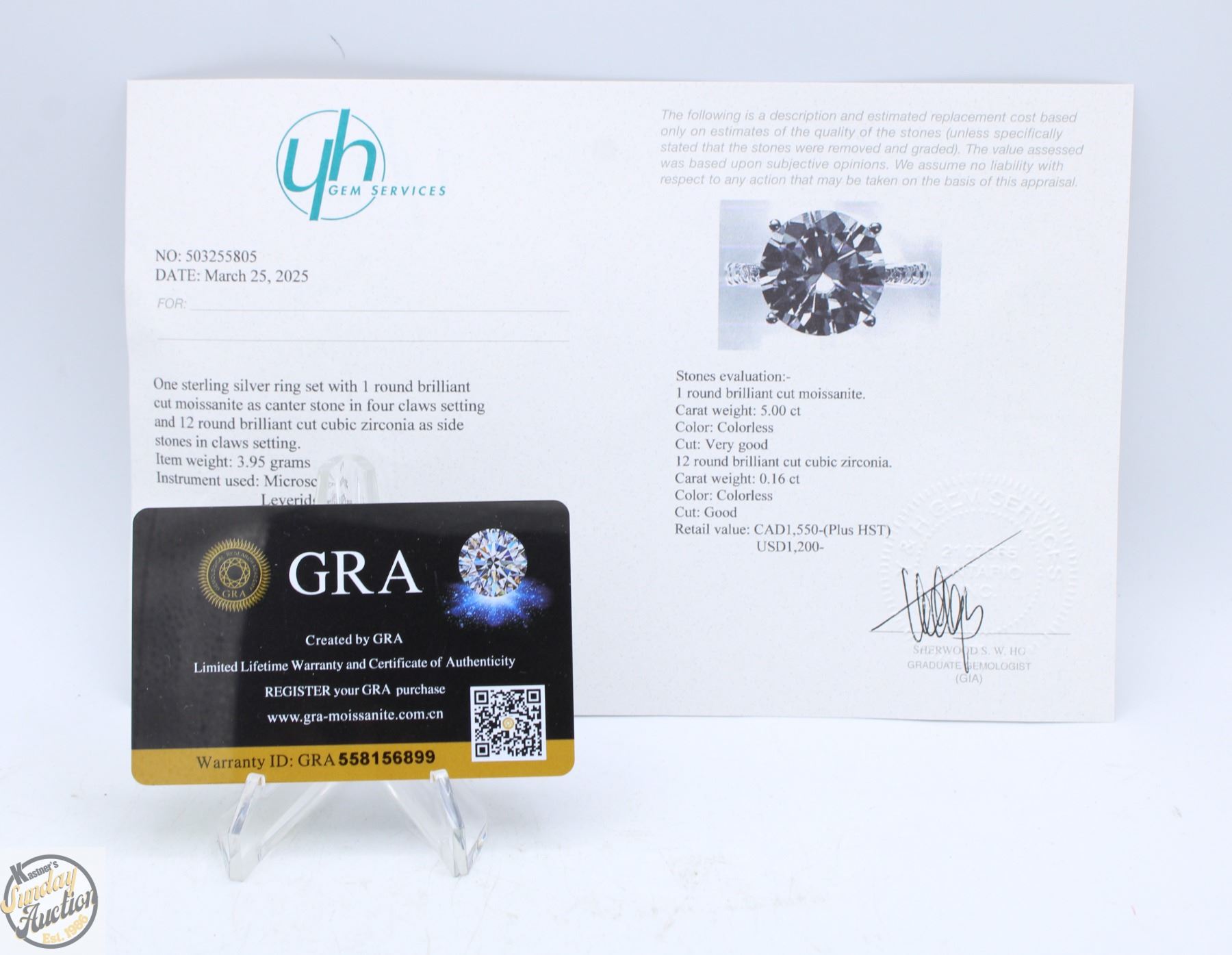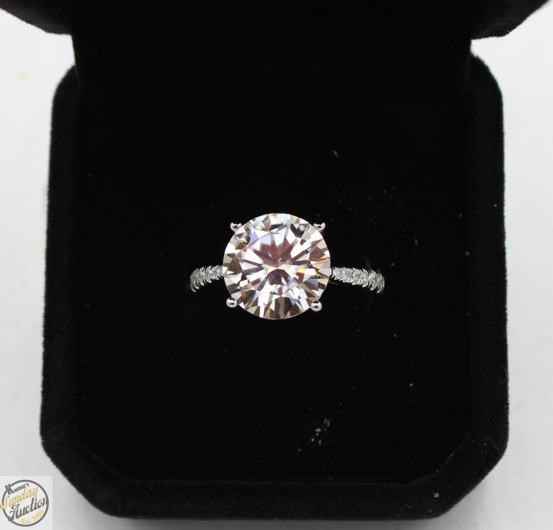 CUT MOISSANITE STONE VVS D COLOR SET IN CENTER WITH 12 ROUND BRILLIANT CUT CUBIC ZIRCONIA AND SET IN 925 SILVER RING SIZE 6.5 RETAIL VALUE $1,450.00 **ALL ITEMS MUST BE REMOVED BY 5PM SATURDAY, JULY 26th 2025. ALL REMAINING ITEMS WILL BE SUBJECT TO A $6.00 PER DAY STORAGE CHARGE. ANY ITEMS REMAINING AFTER MONDAY, AUGUST 11TH 2025 WILL BE CONSIDERED FORFEITED. NO REFUNDS WILL BE ISSUED FOR FORFEITED ITEMS. TO SCHEDULE A PICK UP APPOINTMENT CLICK HERE