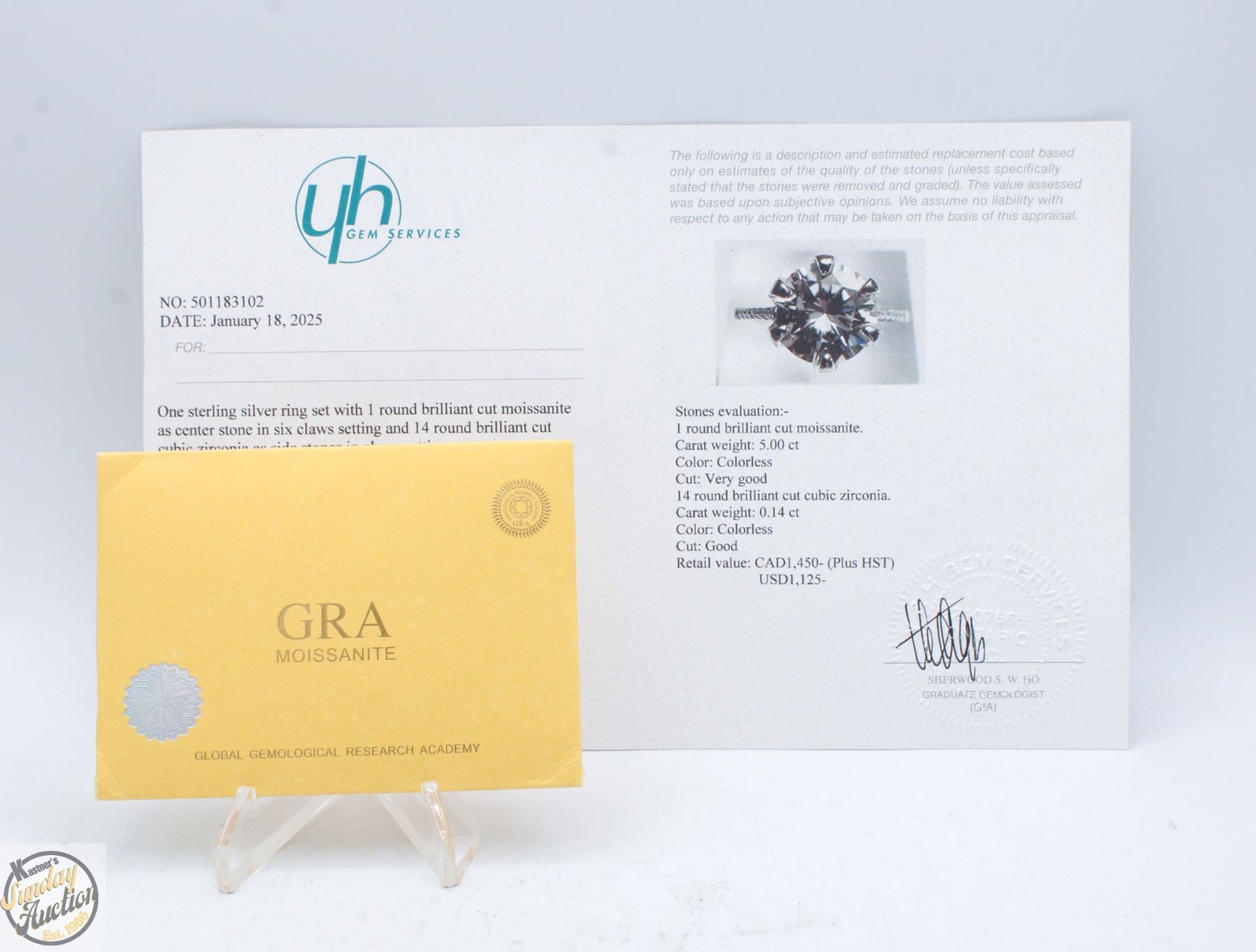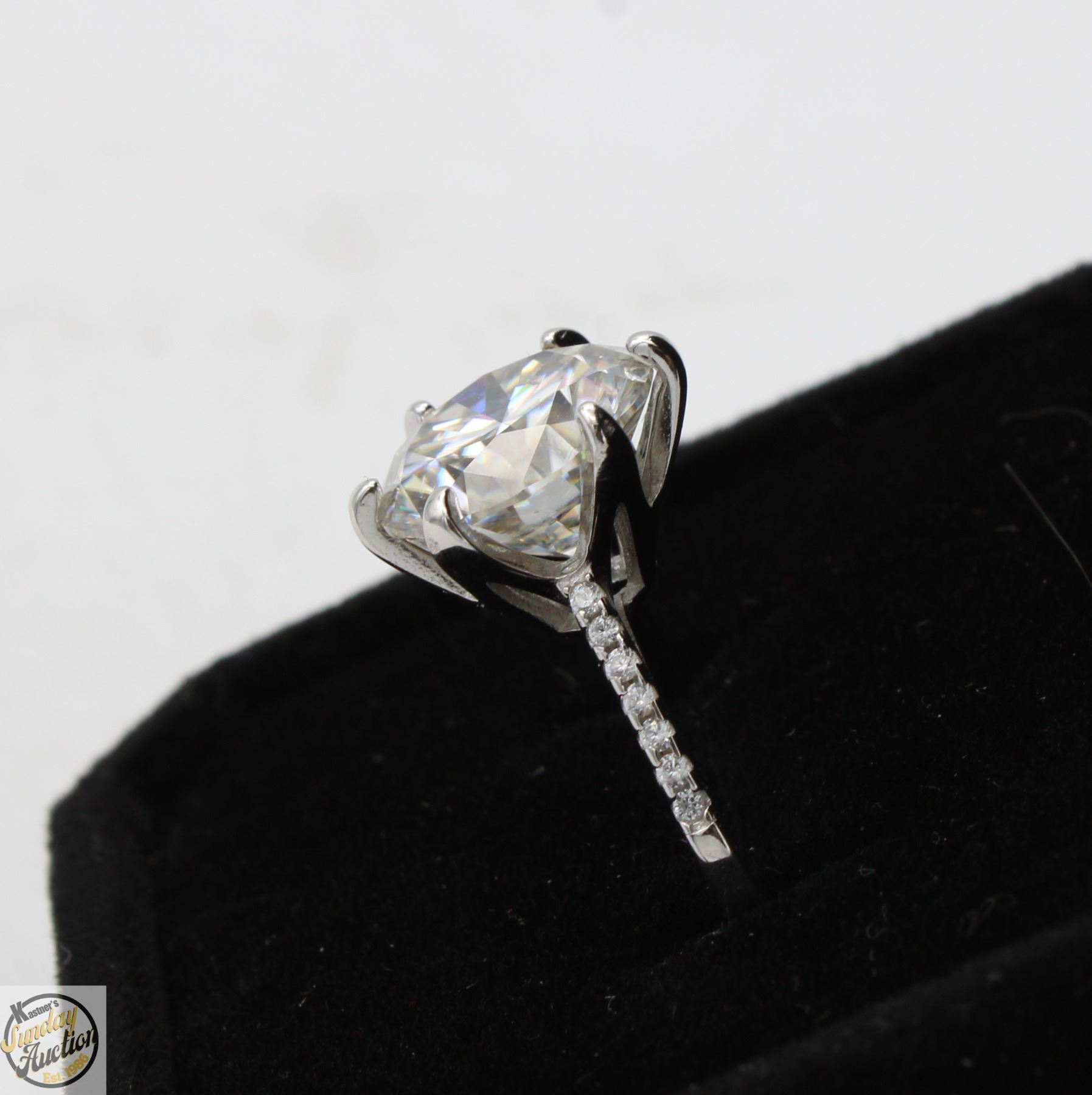 CUT MOISSANITE STONE VVS D COLOR SET IN CENTER WITH 14 ROUND BRILLIANT CUT CUBIC ZIRCONIA AND SET IN 925 SILVER RING SIZE 7 RETAIL VALUE $1,450.00**ALL ITEMS MUST BE REMOVED BY 5PM SATURDAY, JULY 19TH 2025. ALL REMAINING ITEMS WILL BE SUBJECT TO A $6.00 PER DAY STORAGE CHARGE. ANY ITEMS REMAINING AFTER MONDAY, AUGUST 4TH, 2025 WILL BE CONSIDERED FORFEITED. NO REFUNDS WILL BE ISSUED FOR FORFEITED ITEMS. TO SCHEDULE A PICK UP APPOINTMENT CLICK HERE