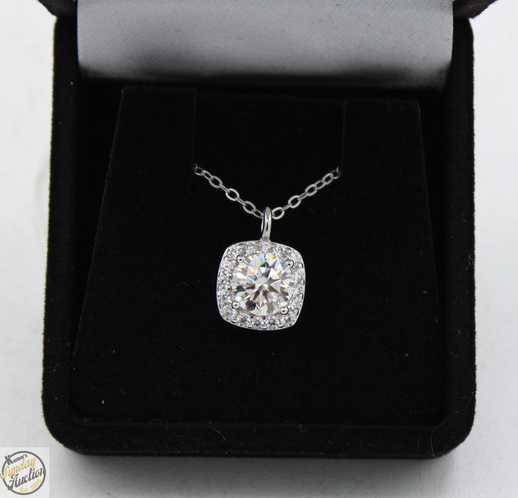 CUT MOISSANITE STONE VVS D COLOR WITH 25 ROUND BRILLIANT CUT CUBIC ZIRCONIA SET IN SQUARE HALO AND IN BALE SET IN 925 SILVER PENDANT RETAIL VALUE $900.00 **ALL ITEMS MUST BE REMOVED BY 5PM SATURDAY, JULY 26th 2025. ALL REMAINING ITEMS WILL BE SUBJECT TO A $6.00 PER DAY STORAGE CHARGE. ANY ITEMS REMAINING AFTER MONDAY, AUGUST 11TH 2025 WILL BE CONSIDERED FORFEITED. NO REFUNDS WILL BE ISSUED FOR FORFEITED ITEMS. TO SCHEDULE A PICK UP APPOINTMENT CLICK HERE