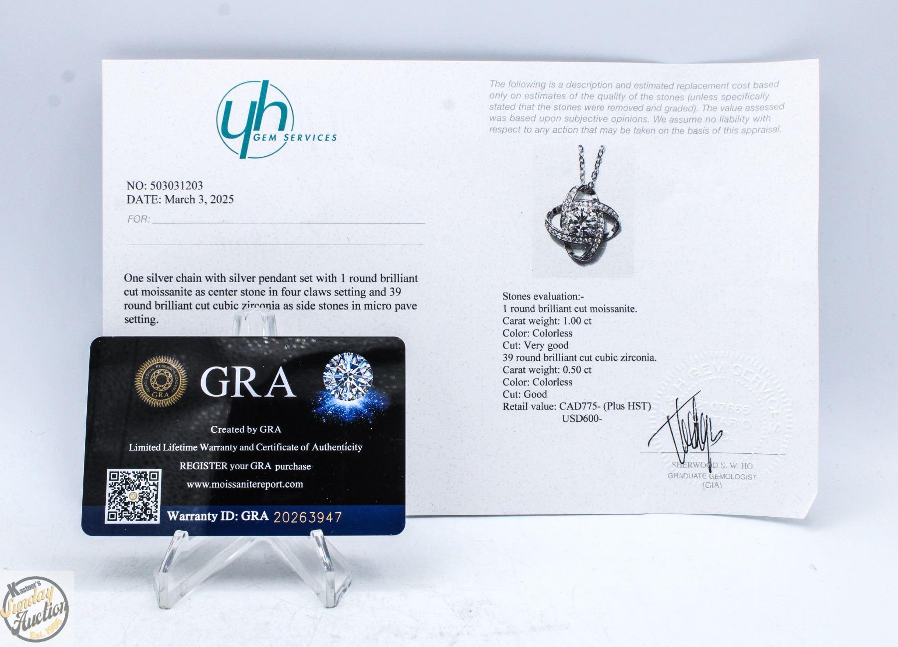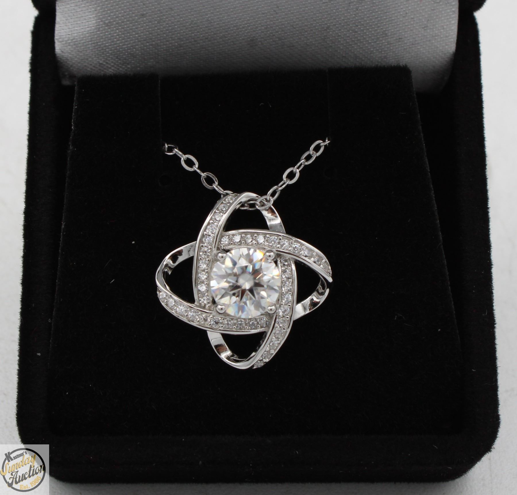 CUT MOISSANITE STONE VVS D COLOR WITH 39 ROUND BRILLIANT CUT CUBIC ZIRCONIA SET IN 2 OVAL SHAPED HALO SET IN 925 SILVER PENDANT RETAIL VALUE $900.00**ALL ITEMS MUST BE REMOVED BY 5PM SATURDAY, JULY 19TH 2025. ALL REMAINING ITEMS WILL BE SUBJECT TO A $6.00 PER DAY STORAGE CHARGE. ANY ITEMS REMAINING AFTER MONDAY, AUGUST 4TH, 2025 WILL BE CONSIDERED FORFEITED. NO REFUNDS WILL BE ISSUED FOR FORFEITED ITEMS. TO SCHEDULE A PICK UP APPOINTMENT CLICK HERE