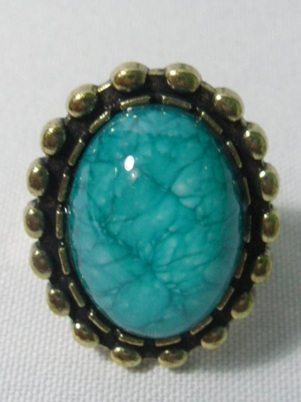 28CTW TEAL OVAL BRASS RING SIZE 6 **|**|** 28CTW TEAL OVAL BRASS RING SIZE 6 ; MSRP: $150