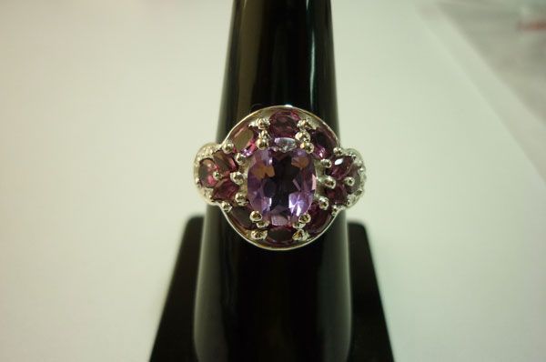 29.00 CTW Amethyst and Tourmiline Cut fine ring .925 ST **|**|** 29.00 CTW Amethyst and Tourmiline Cut fine ring .925 STERLING SILVER ; MSRP: $375