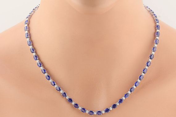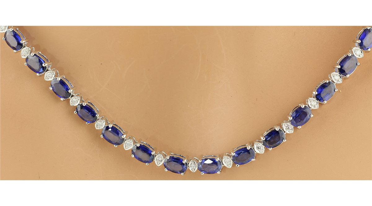 14K GOLD DIAMOND AND BLUE SAPPHIRE NECKLACE/**/Diamond 1 CTW:0.79/Diamond Color & Clarity:G-H/SI1-SI3 /Diamond Count 2:/Diamond 2 CTW:/Diamond Color & Clarity:/Gemstone Count1:54 pcs /Gemstone 1 CTW:28.22/Gemstone Count 2:/Gemstone 2 CTW:/Metal Type 1 Gold:14k Yellow Gold /Gold Gram Weight:16.85/Metal Type 2:/Silver Gram Weight:/Gross Weight: