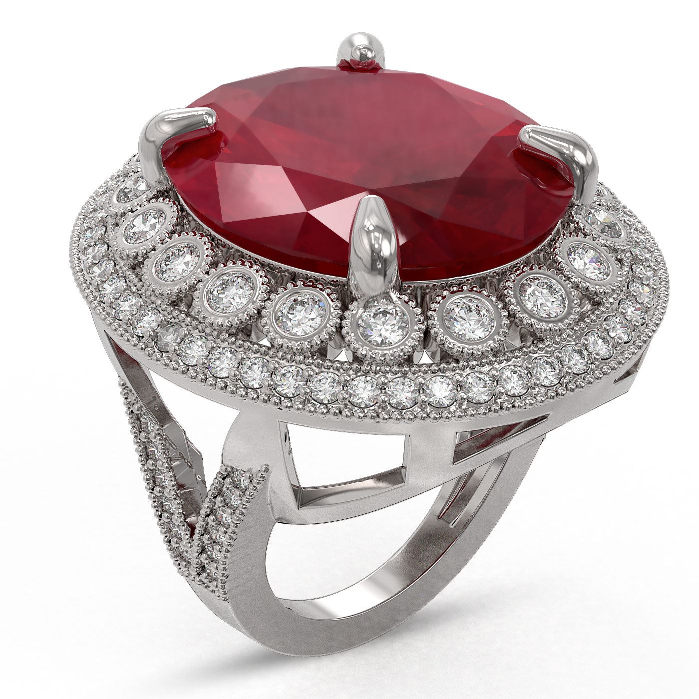 29.04 ctw Certified Ruby & Diamond Victorian Ring 14K White Gold