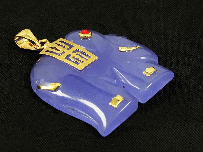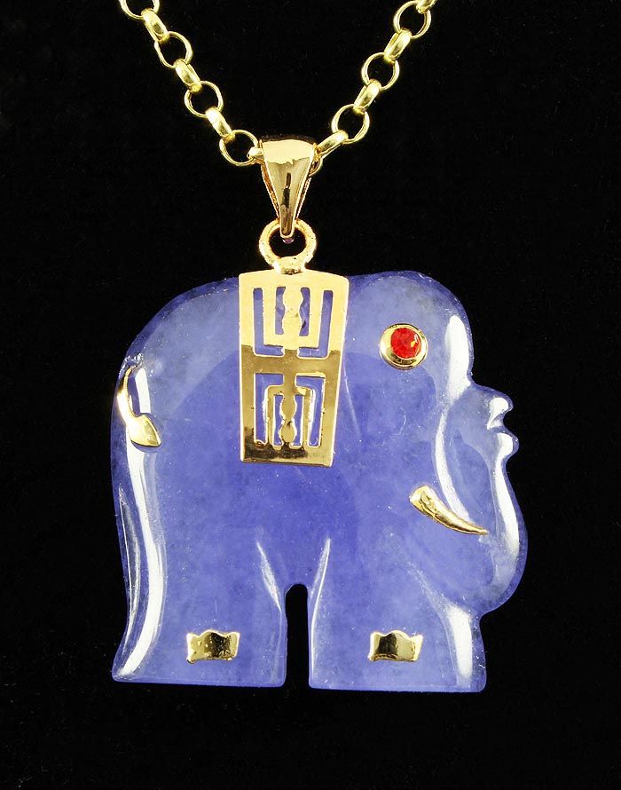 29.12CTW PURPLE JADE ELEPHANT GOLD PLATED PENDANT **|**|** 18K GOLD PLATED PURPLE ELEPHANT SILVER PENDANT MEASURING 25.14X24.93MM ; MSRP: $300