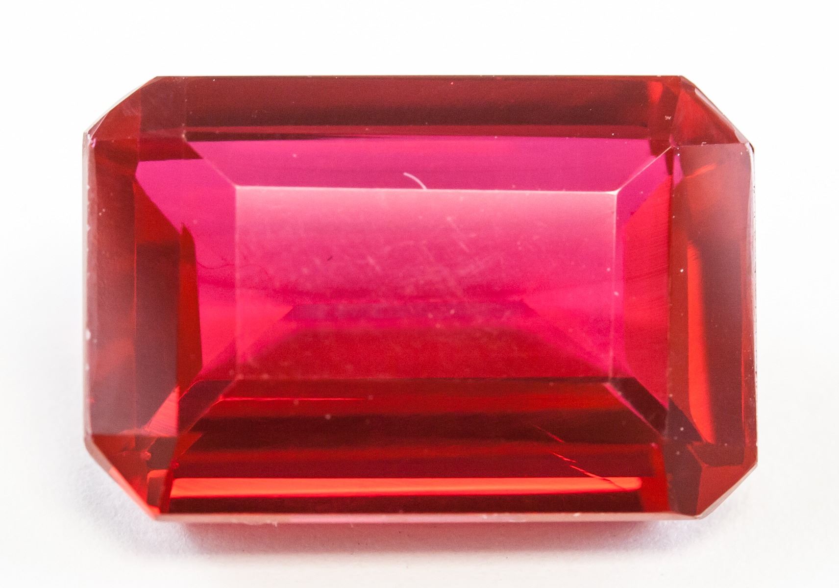One (1) 29.15 ct emerald cut red natural ruby. Origin: Mogok. Accompanied with GGL certificate. 20.42 x 13.69 x 8.53 mm.