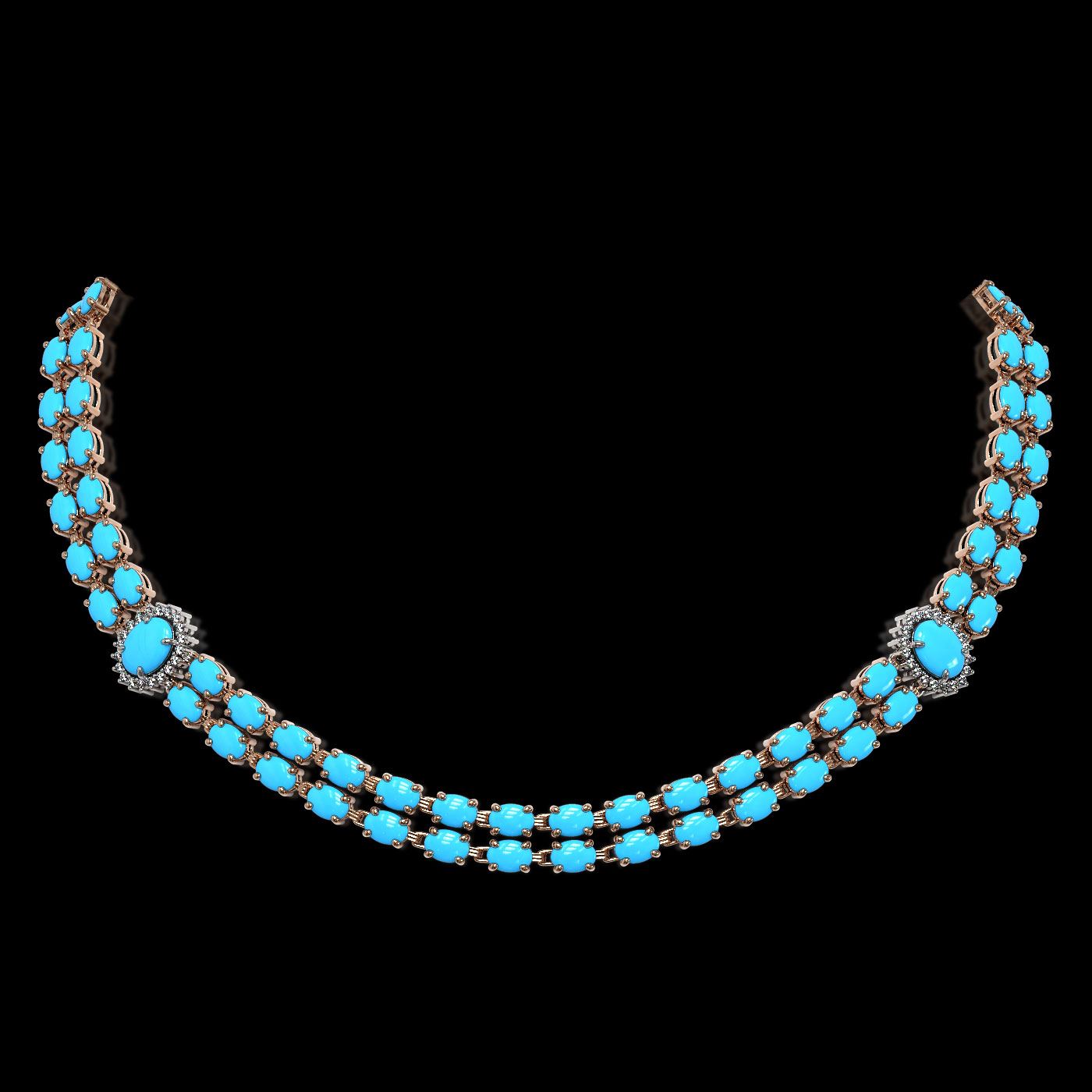 REF-454F5M - SKU: 44220 ---- 29.16 ctw Turquoise & Diamond Necklace 14K Rose Gold
