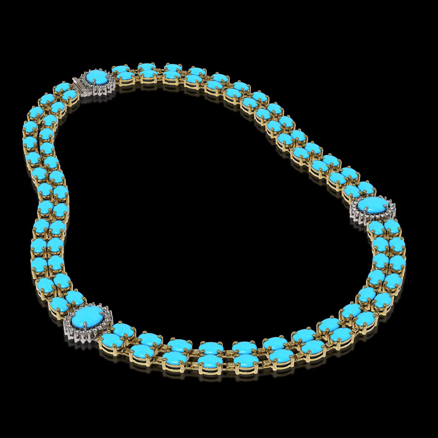 REF-454G5W - SKU: 44221 ---- 29.16 ctw Turquoise & Diamond Necklace 14K Yellow Gold