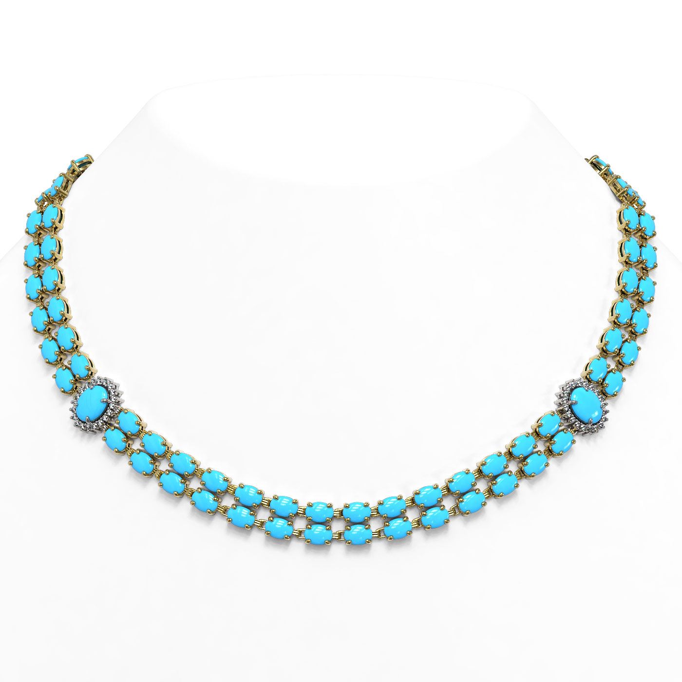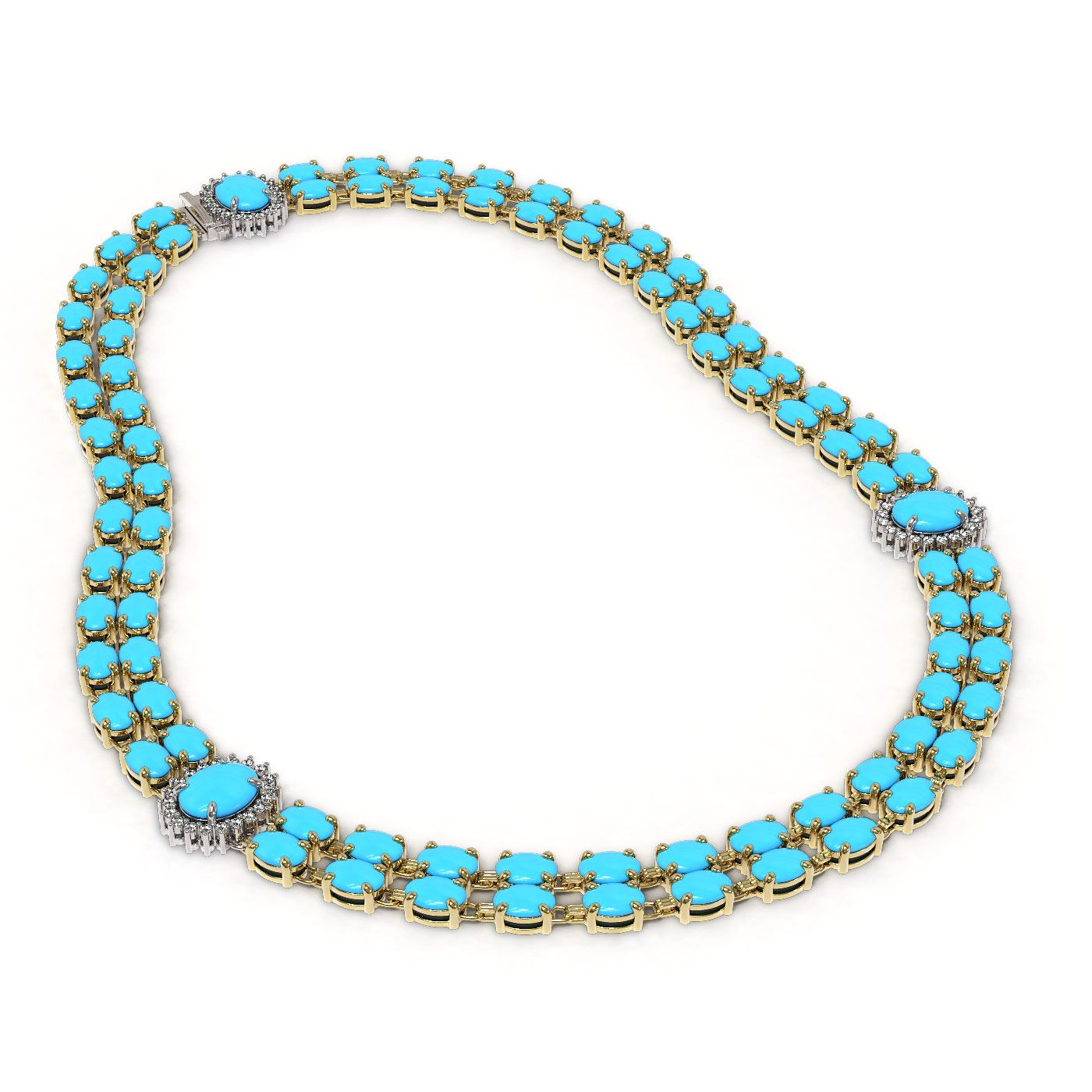 SKU: 44221 ---- 29.16 ctw Turquoise & Diamond Necklace 14K Yellow Gold