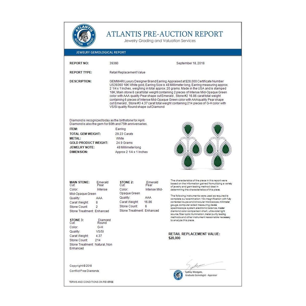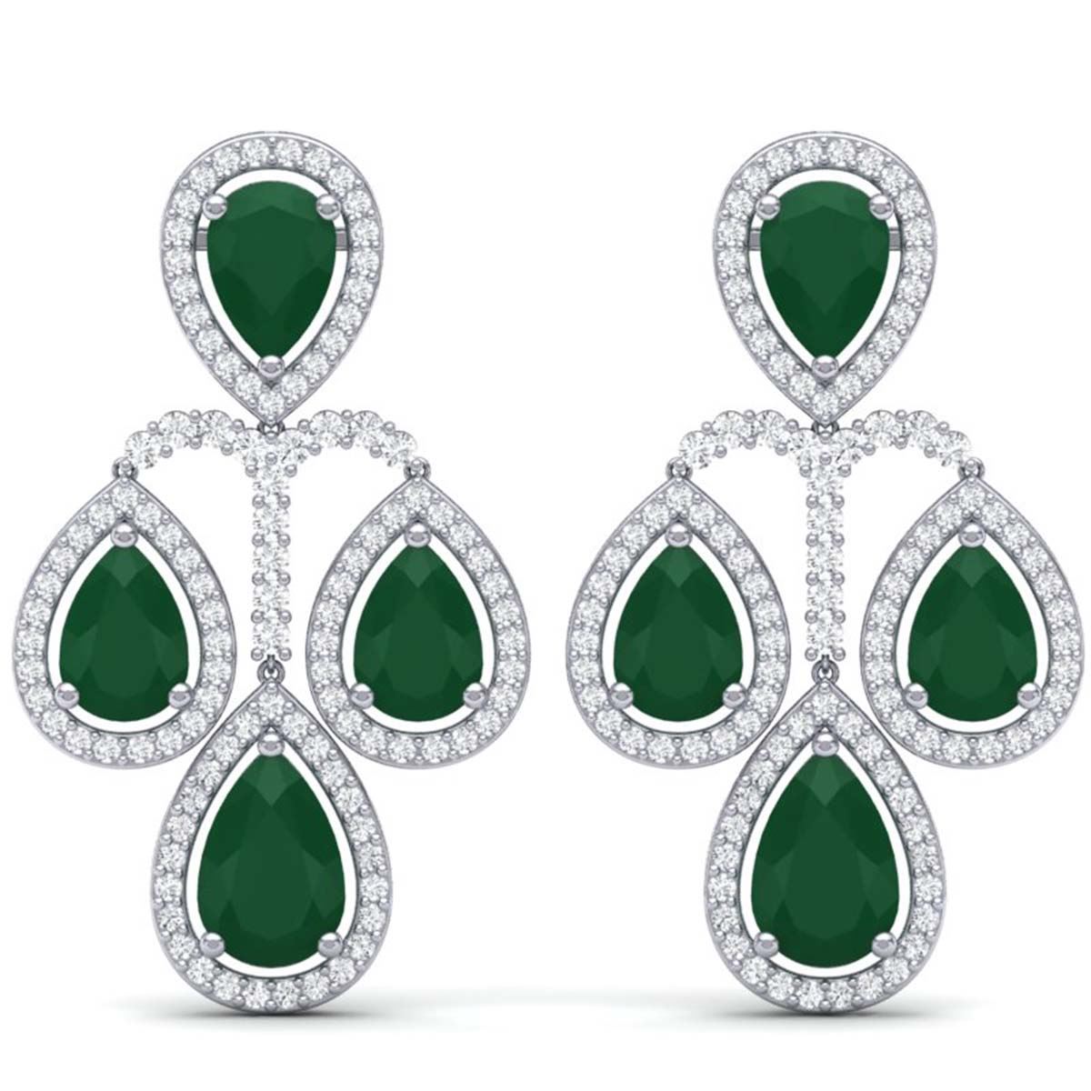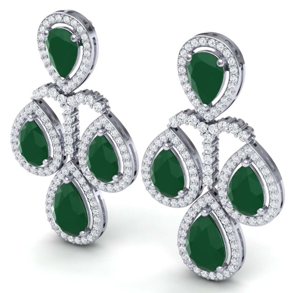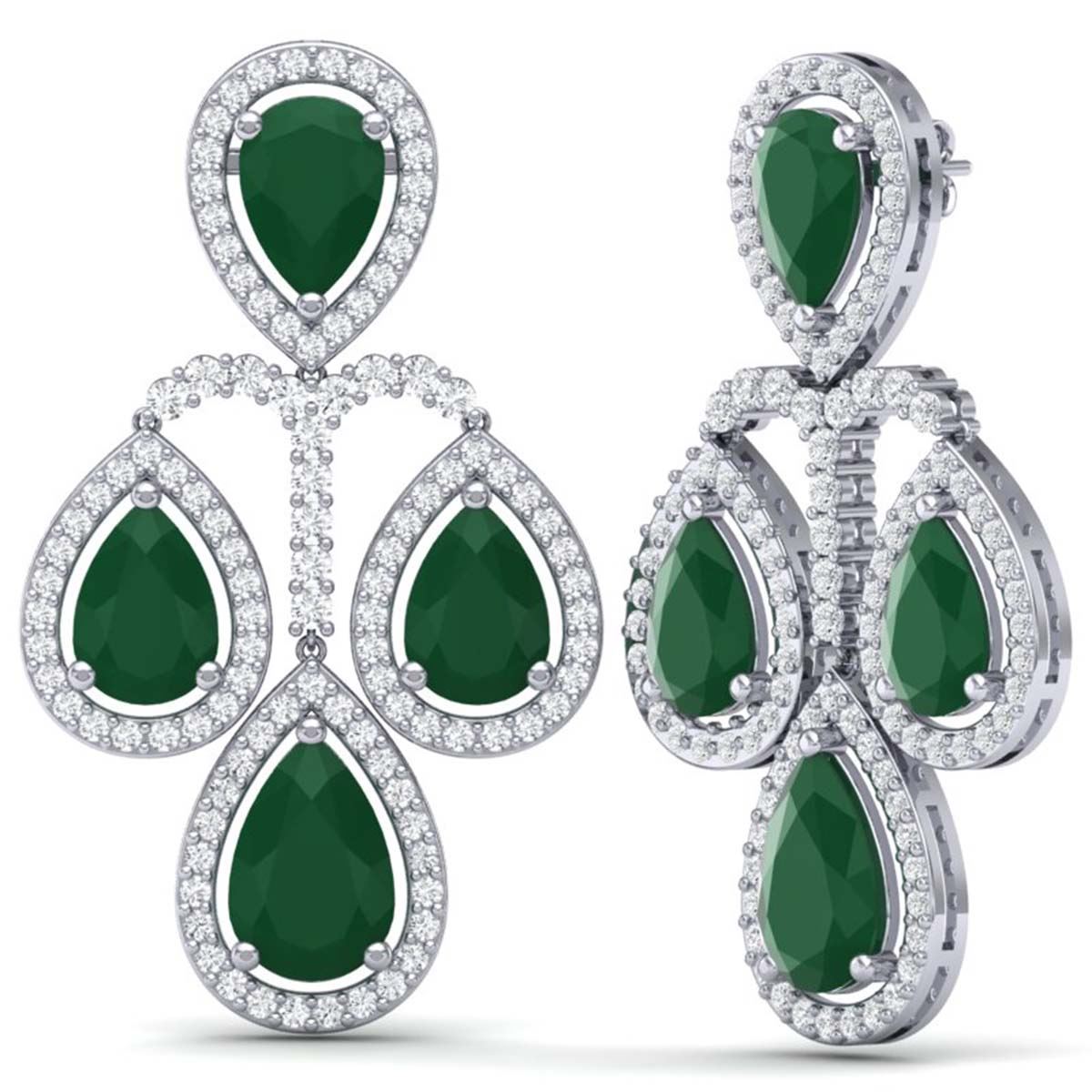 29.23 ctw Emerald & VS Diamond Earrings 18K White Gold