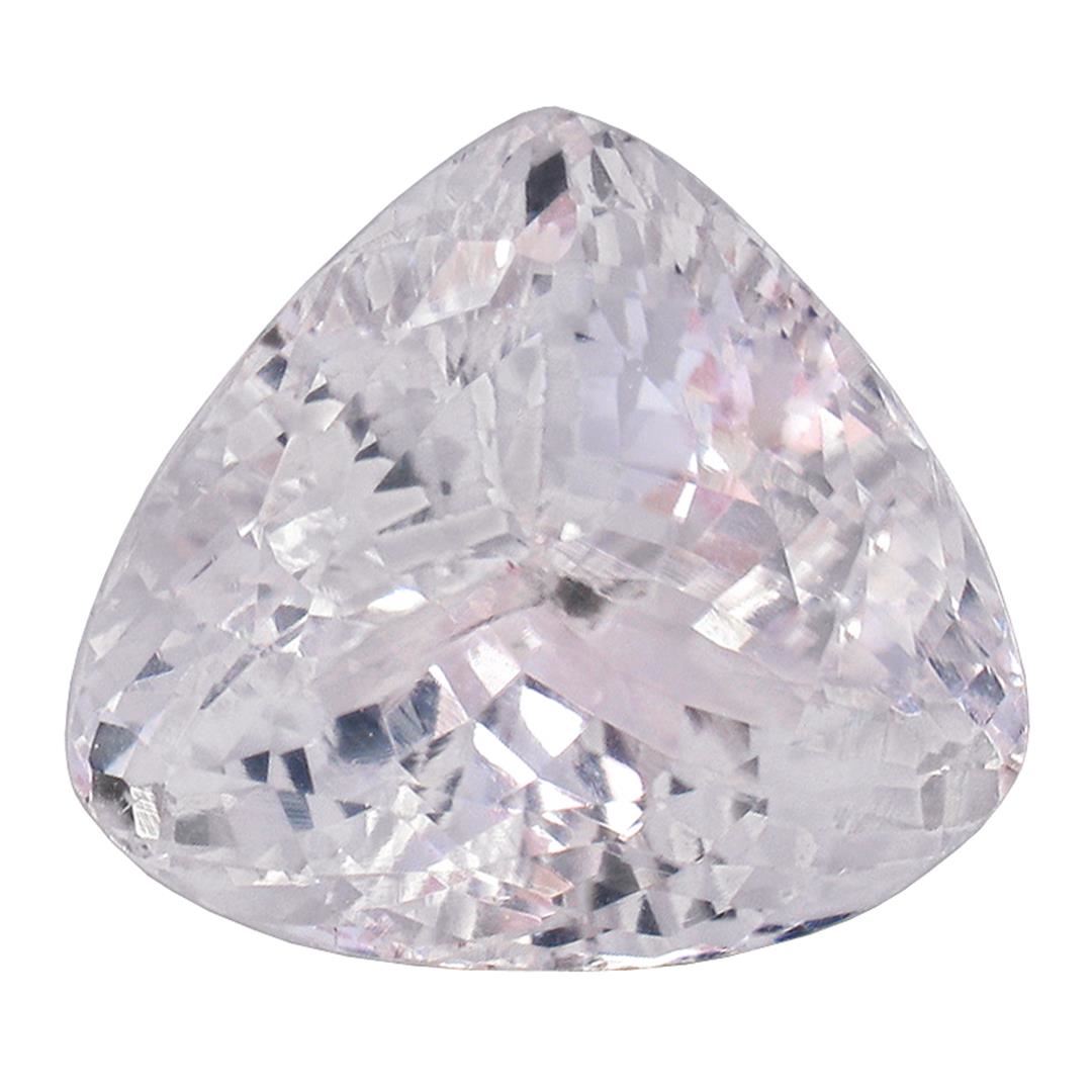 One triangle mixed cut natural kunzite, measuring 19.00 x 18.50 x 12.50mm, exact weight 29.31ct., clarity is eye clean, type I, medium light, very slightly grayish, reddish purple color, (GIA rP 4/3), cut is good. Transmitting light with no distortion, transparent. Westfield Appraised at $8,125.00.
