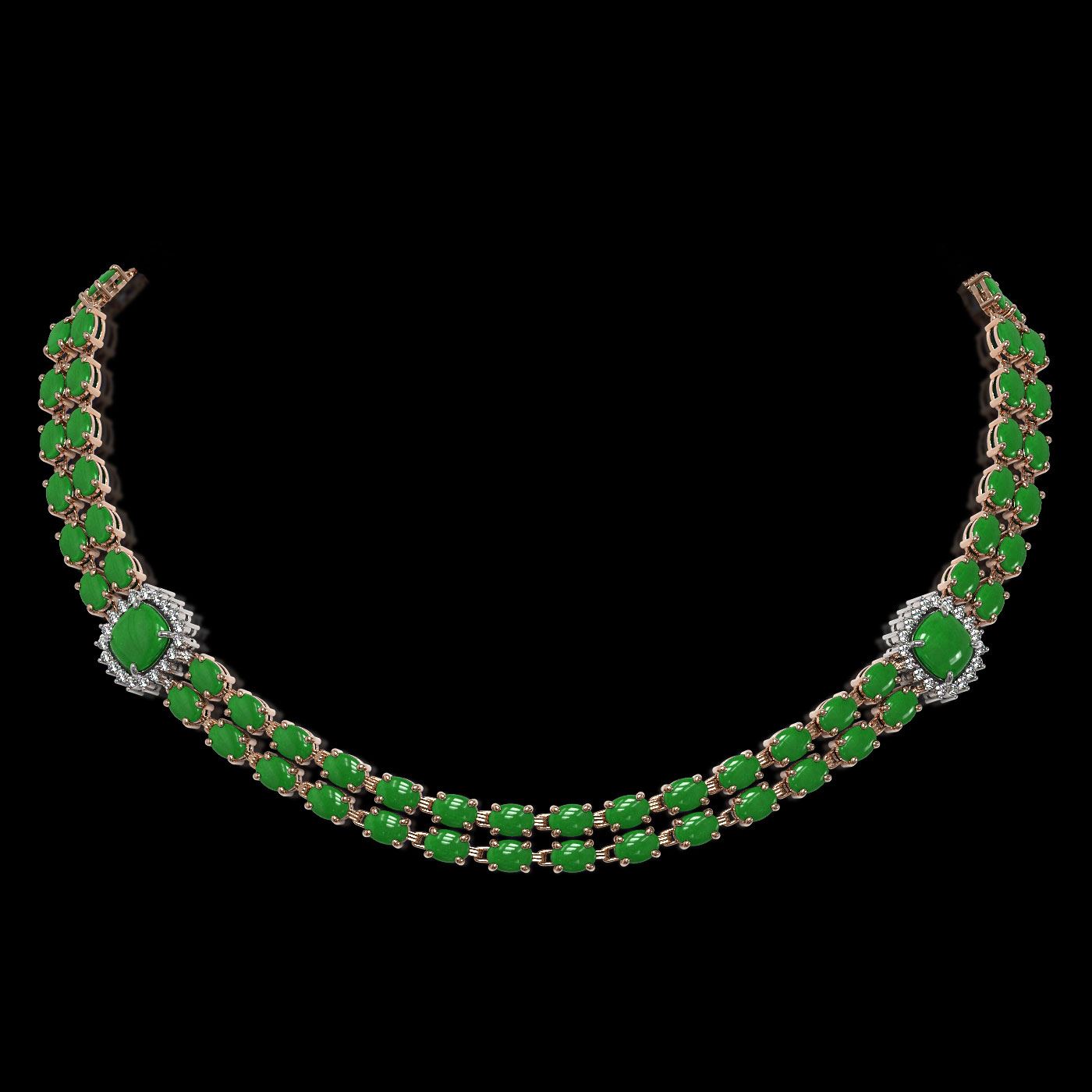 REF-527G3W - SKU: 44736 ---- 29.39 ctw Jade & Diamond Necklace 14K Rose Gold
