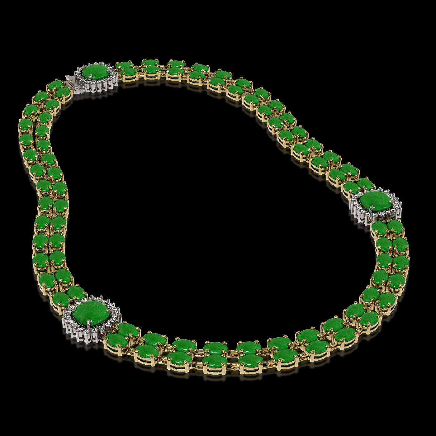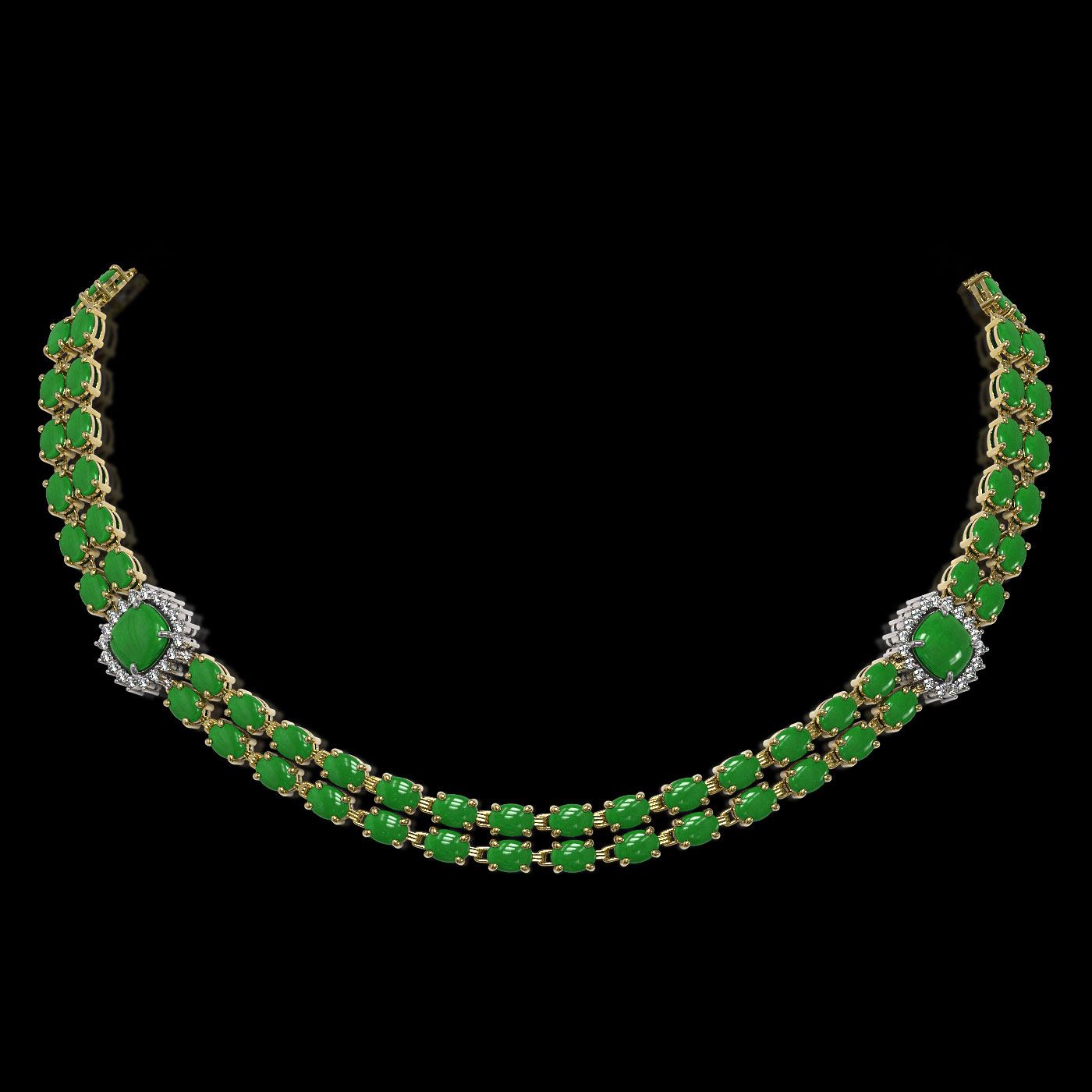 REF-527H3R - SKU: 44737 ---- 29.39 ctw Jade & Diamond Necklace 14K Yellow Gold