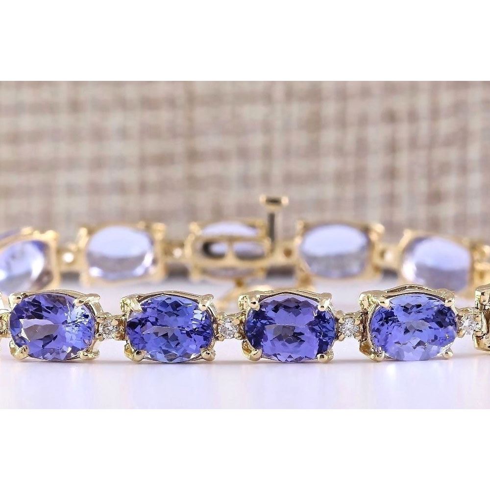 29.50 CTW Natural Tanzanite And Diamond Bracelet In 14k Solid Yellow Gold