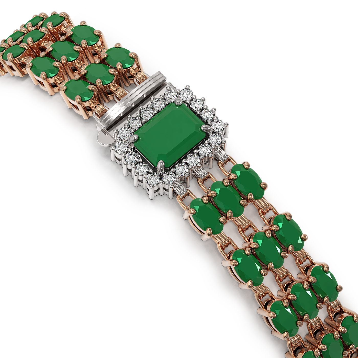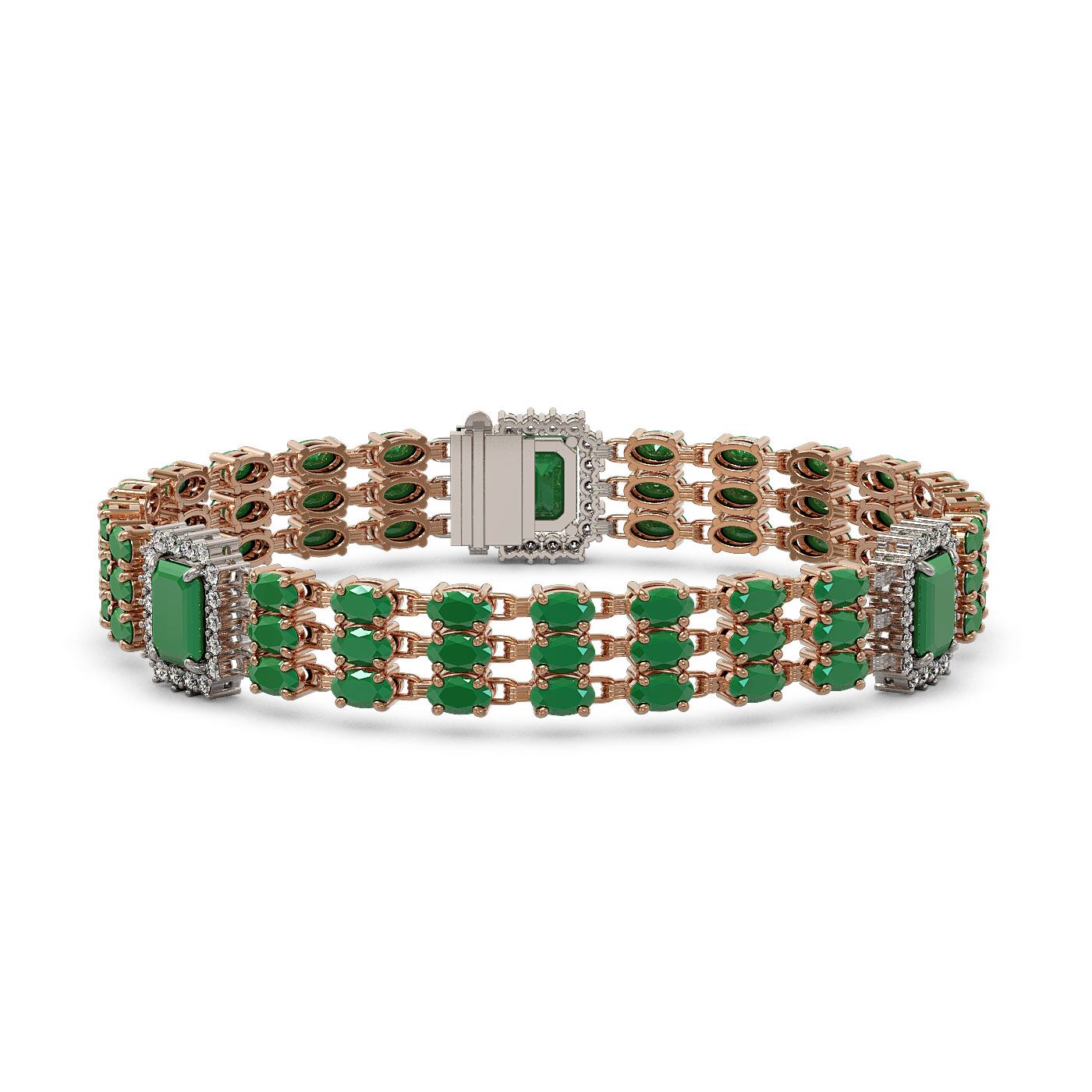 REF-418F2M - SKU: 45366 ---- 29.64 ctw Emerald & Diamond Bracelet 14K Rose Gold