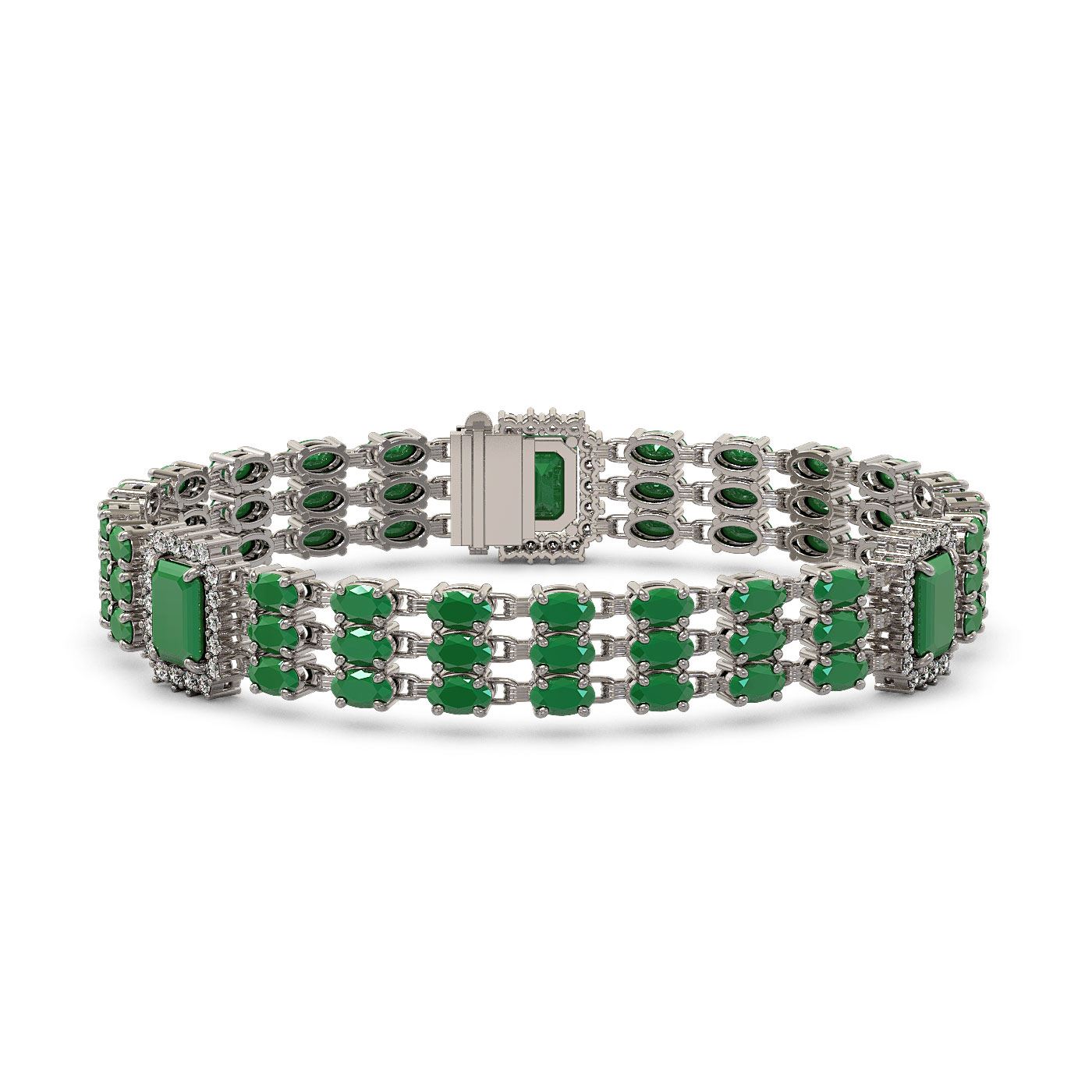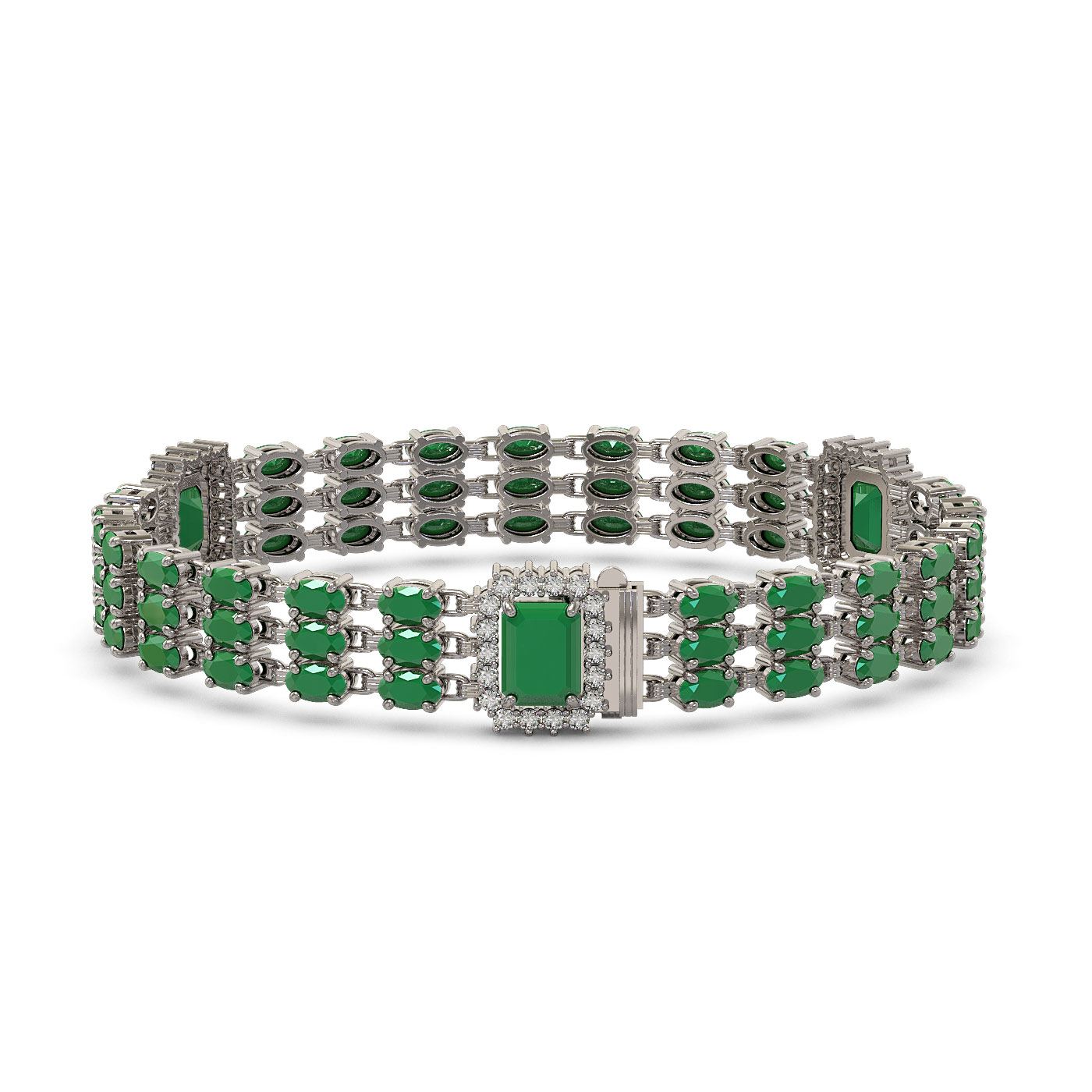 REF-418A2N - SKU: 45365 ---- 29.64 ctw Emerald & Diamond Bracelet 14K White Gold