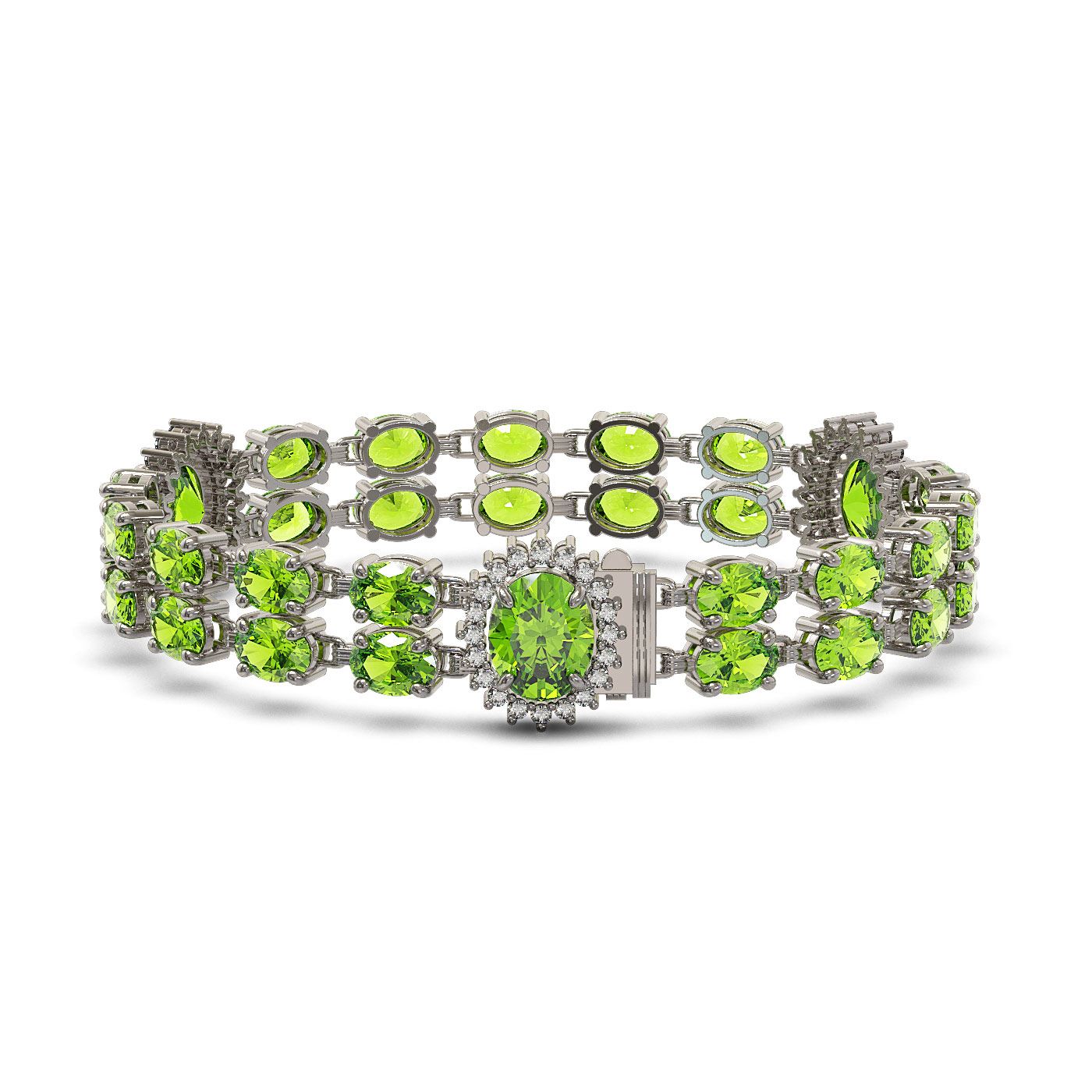 REF-242A3N - SKU: 44423 ---- 29.69 ctw Peridot & Diamond Bracelet 14K White Gold