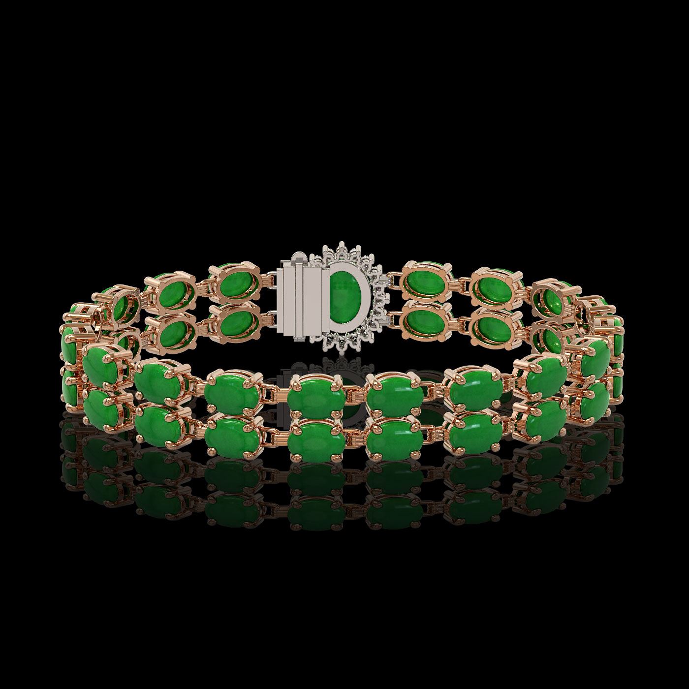 REF-218H2R - SKU: 45534 ---- 29.82 ctw Jade & Diamond Bracelet 14K Rose Gold