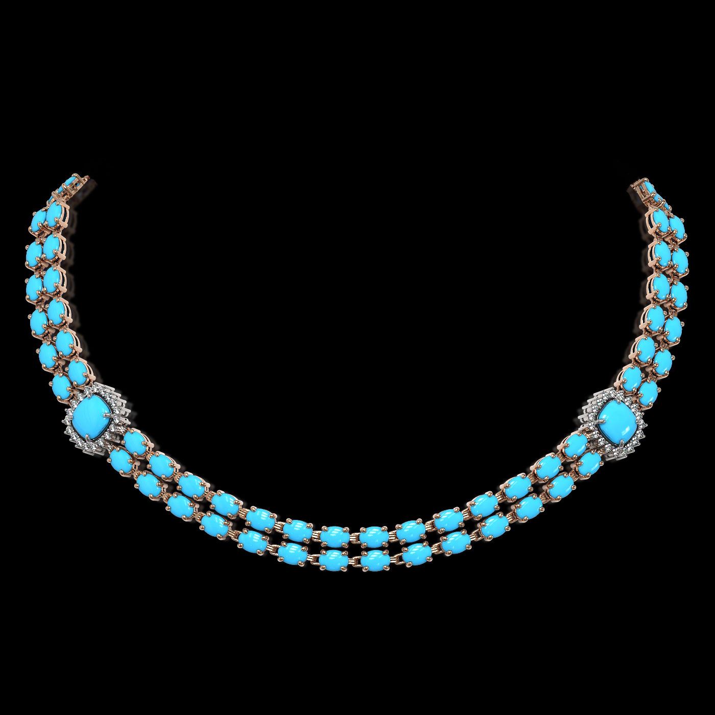 REF-527A3N - SKU: 44733 ---- 29.85 ctw Turquoise & Diamond Necklace 14K Rose Gold