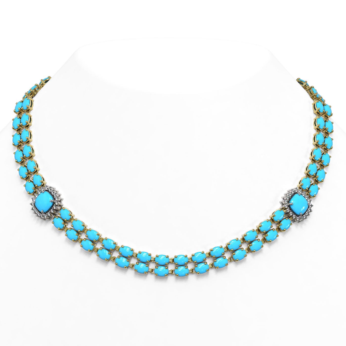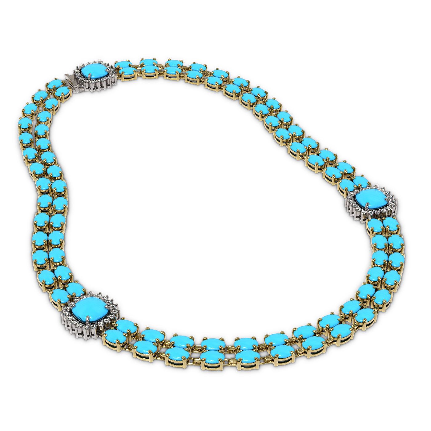 SKU: 44734 ---- 29.85 ctw Turquoise & Diamond Necklace 14K Yellow Gold