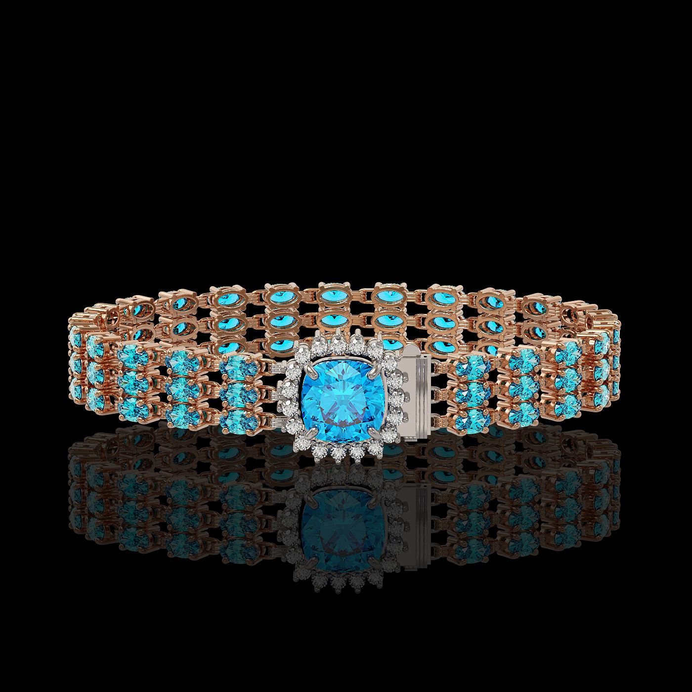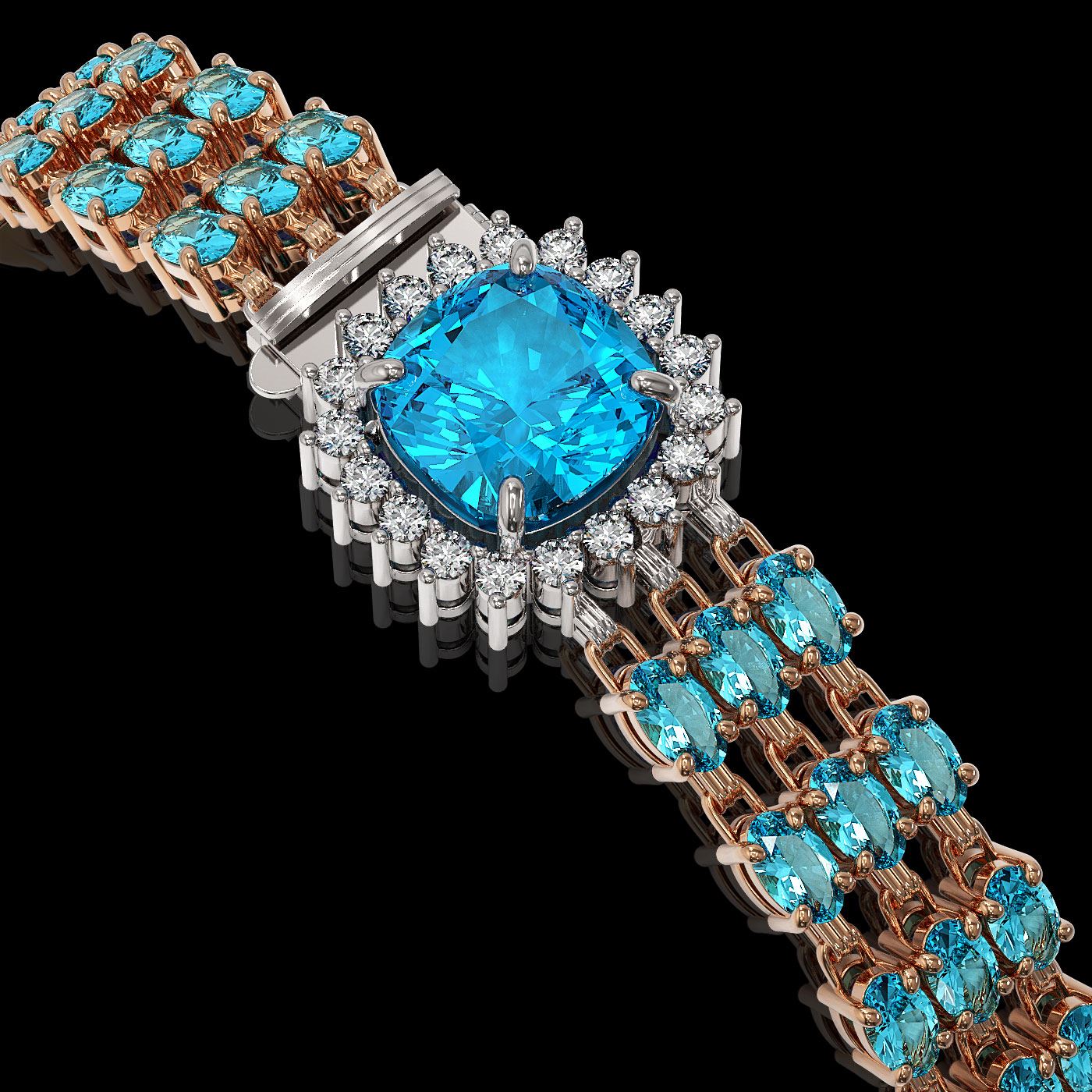 REF-281H8R - SKU: 45912 ---- 29.89 ctw Swiss Topaz & Diamond Bracelet 14K Rose Gold