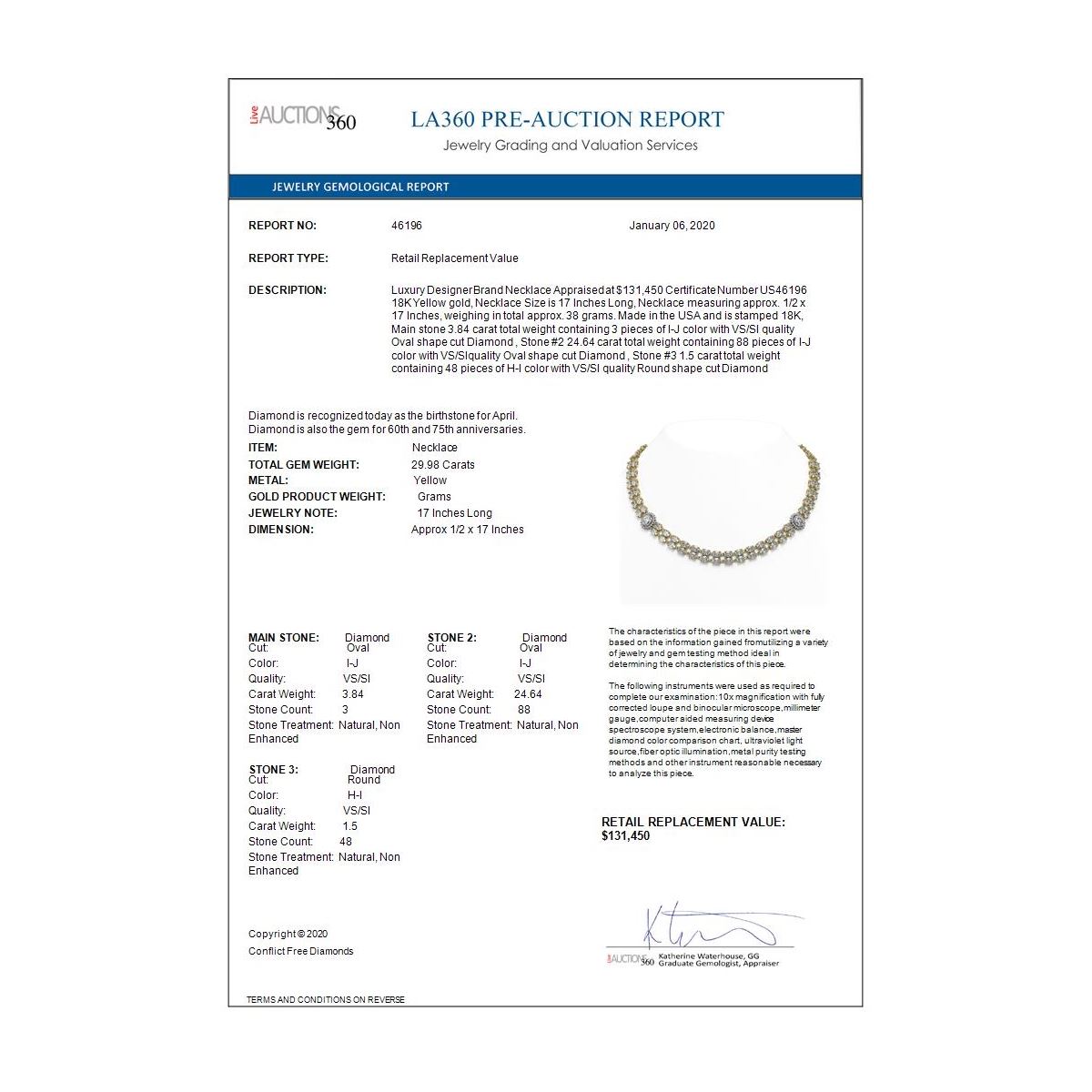 REF-3584N9F - SKU: 46196 ---- 29.98 ctw Rare Oval Diamond Necklace 18K Yellow Gold