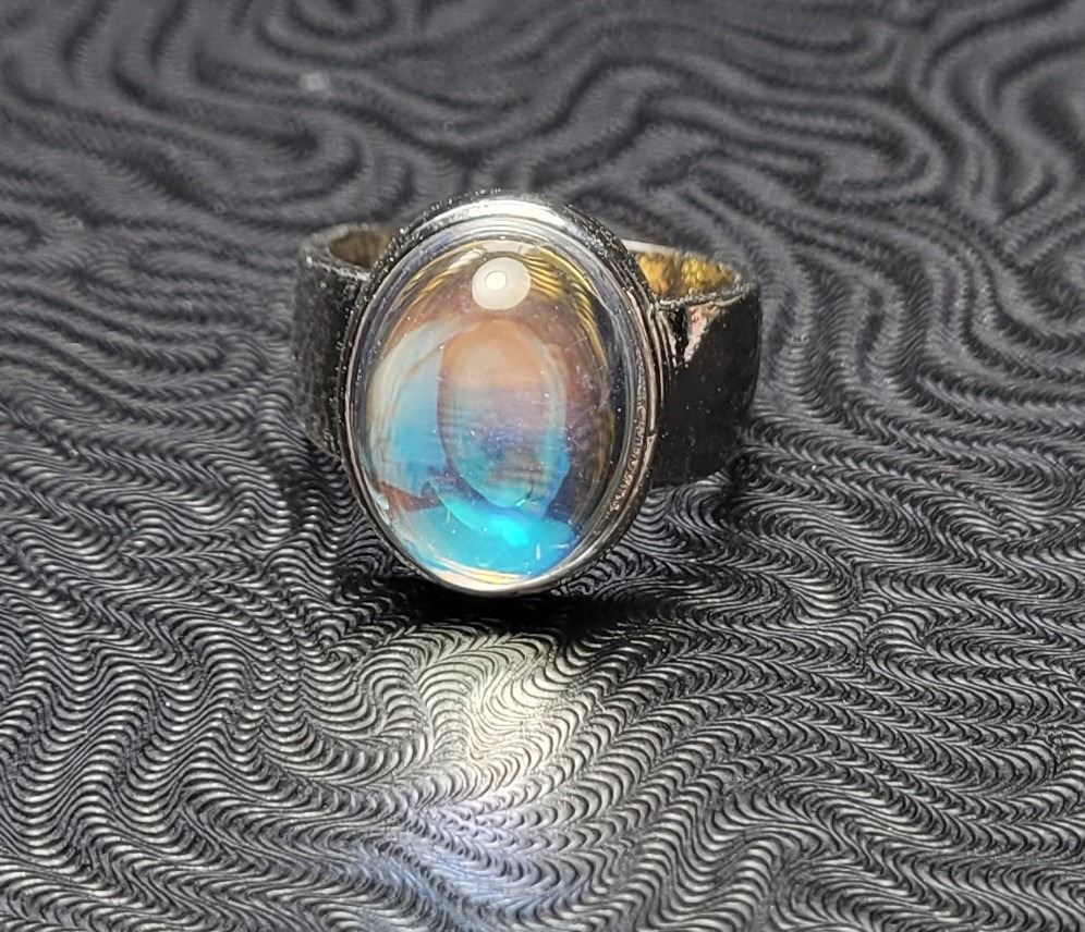 SIZE 8 RING WITH WIDE POLISHED BAND. JEWELERY