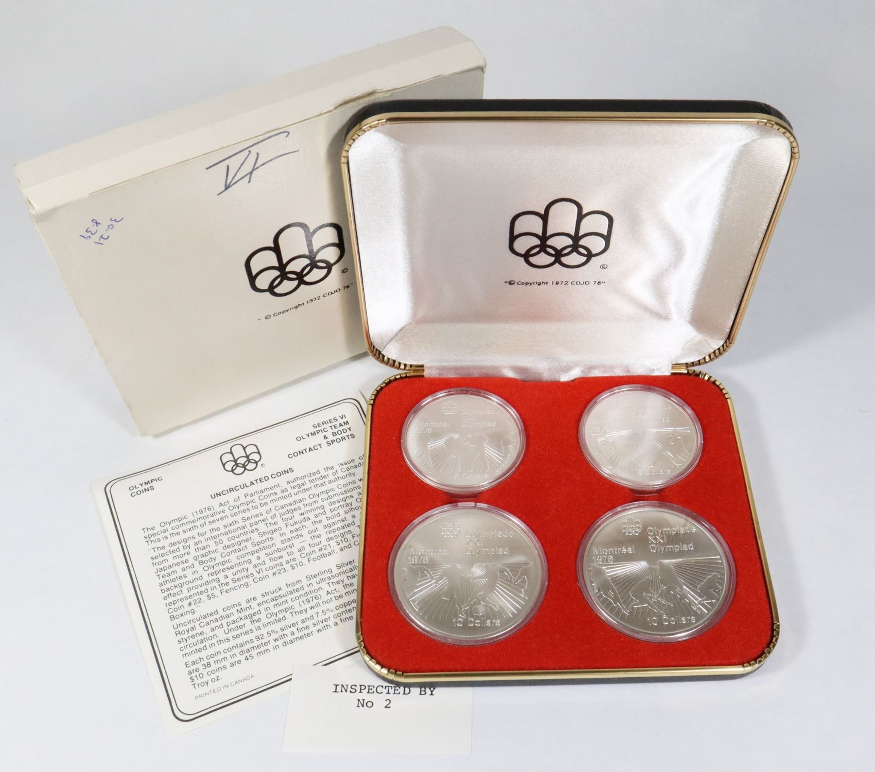 SET 4 COINS $5+ $10 COINS CASED CANADA CONTACT SPORTS