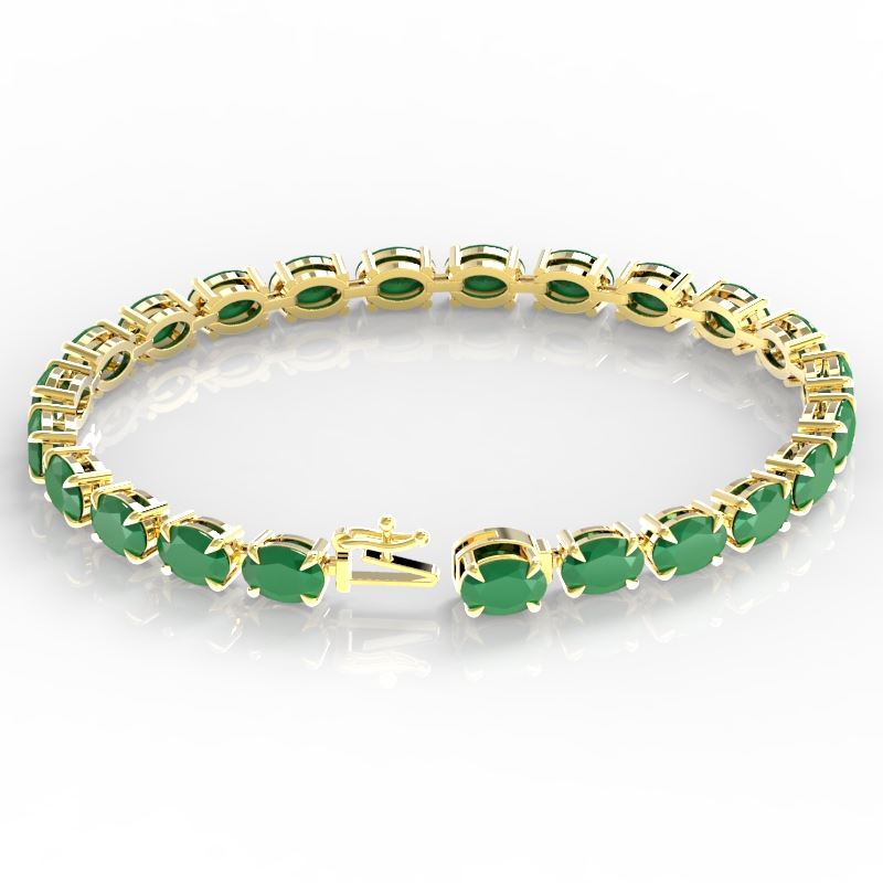REF-180X2T -23388 ---- 29 CTW Emerald Eternity Designer Inspired Tennis Bracelet 14K Yellow Gold ---- Luxury Designer Brand Bracelet Appraised at $12,850 Certificate Number US23388 14k Yellow gold, Bracelet Size is 7 Inches, Bracelet measuring approx. 9 mm x 7 INCHES, weighing in total approx. 12 grams. Made in the USA and is stamped 14k, Main stone 29 carat total weight containing 23 pieces of Intense Green color with AAA quality Oval shape cut Emerald , Stone #2 carat total weight containing pieces of color with quality shape cut