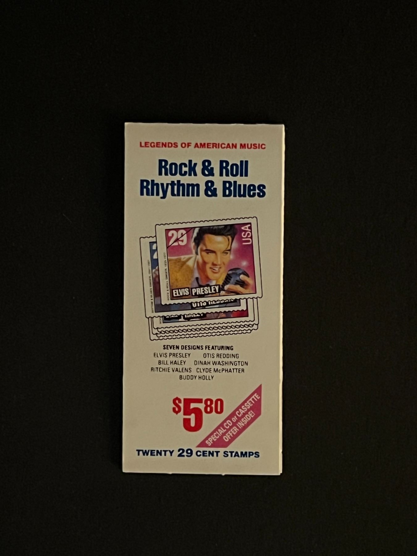 29 Cent 1992 Rock & Roll Rhythm & Blues US Stamp book of 20 with Elvis Presley, Buddy Holly, and others