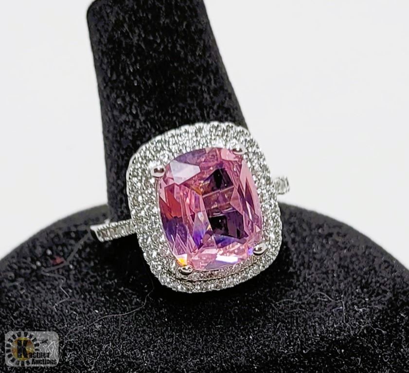 PINK CZ, STAMPED 925 SILVER PLATED, SIZE 8. JEWELLERY