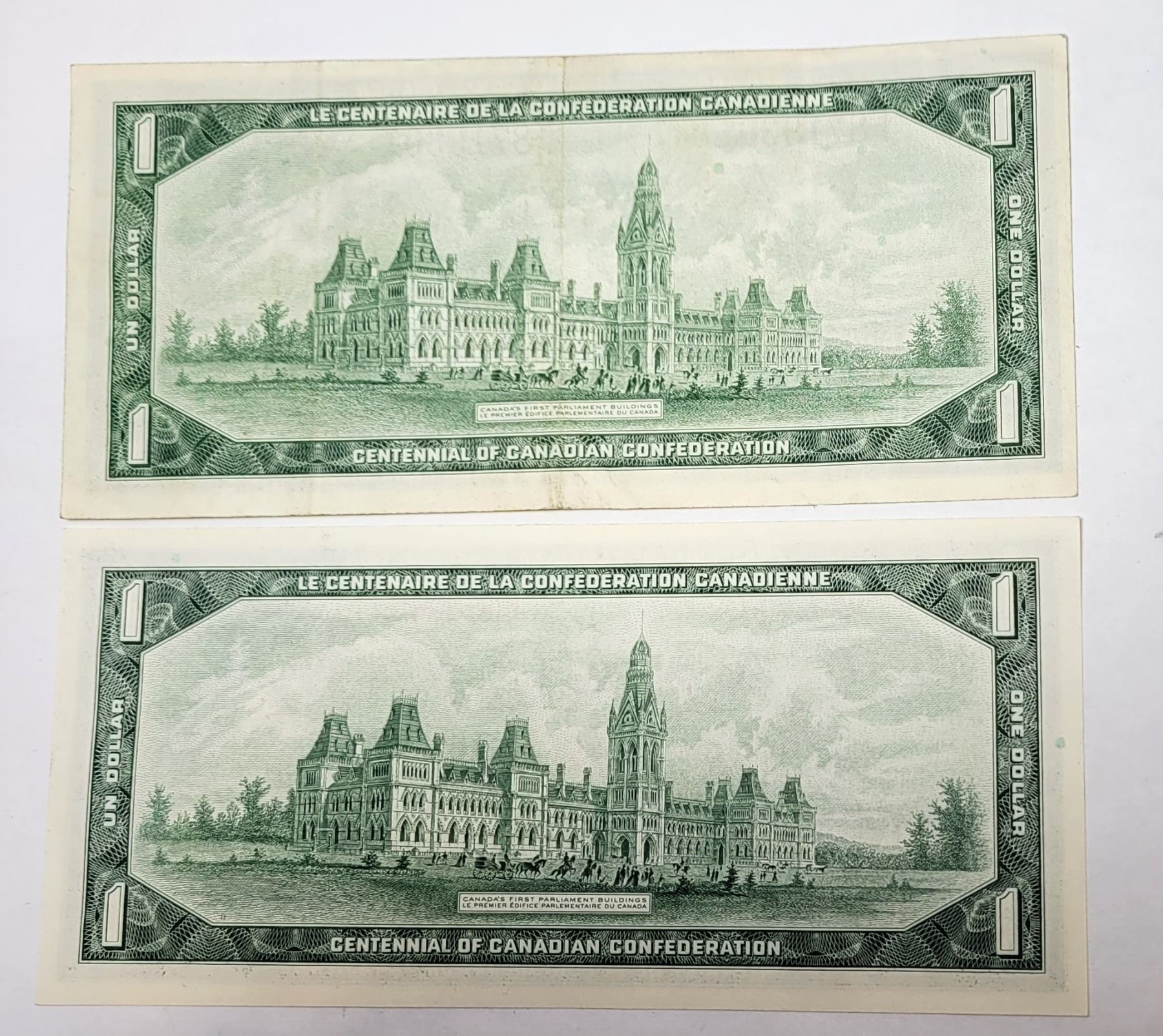 29) LOT OF 2 CANADIAN $1.00 BANKNOTES, ONE WITH A