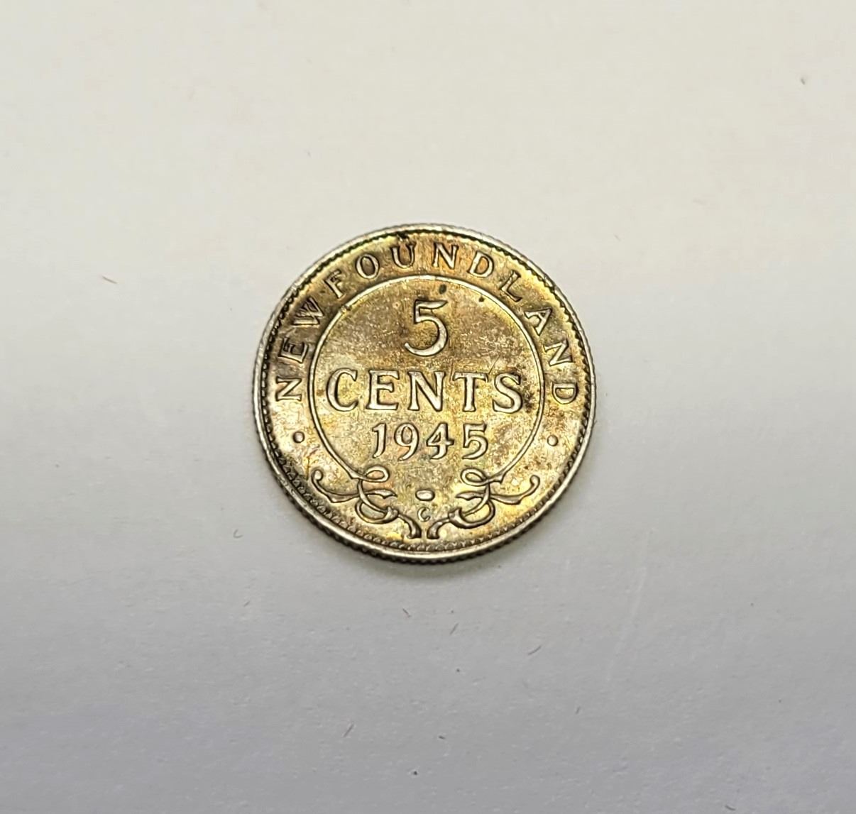 29) NEWFOUNDLAND 1945C NICKLE, 80% SILVER.