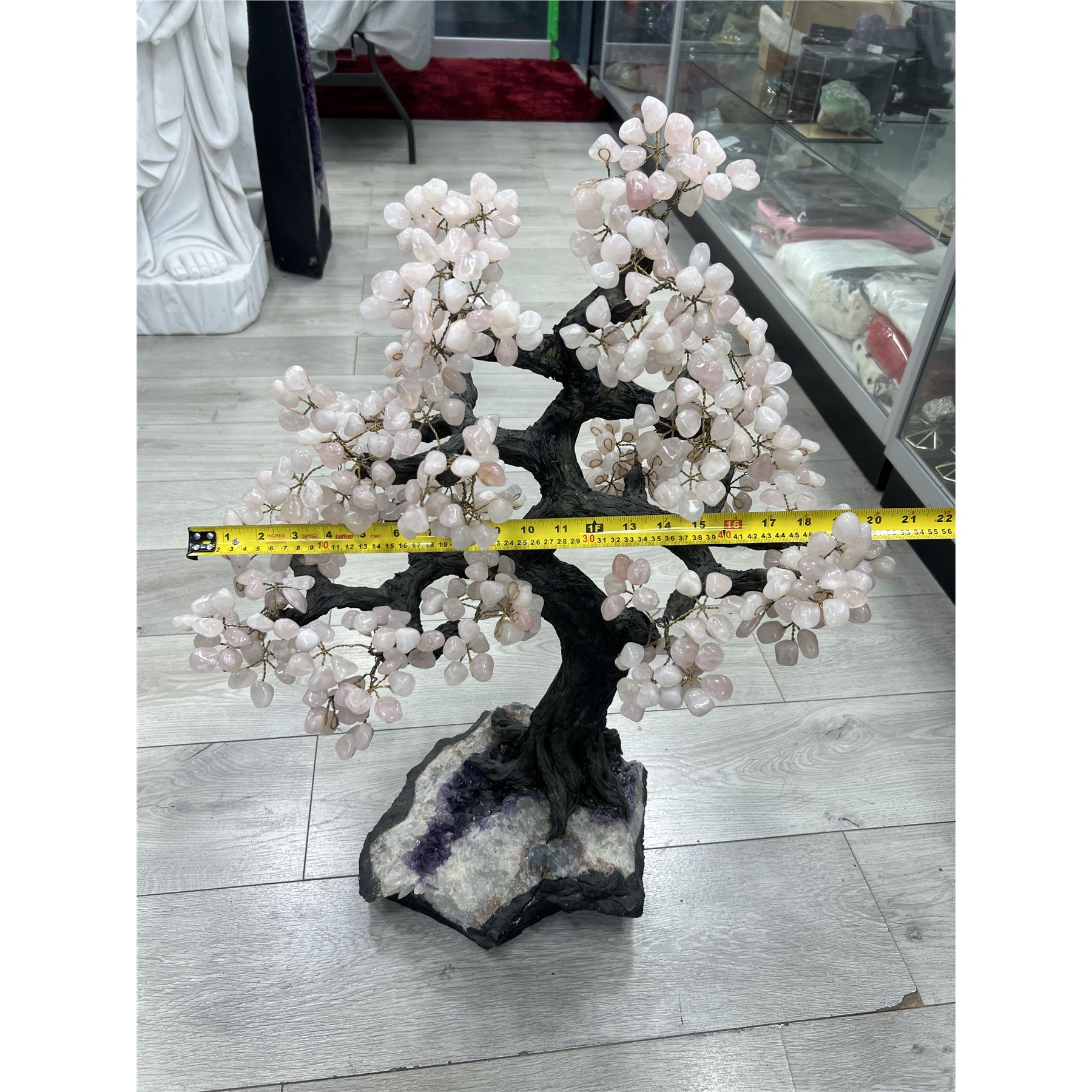 29 X 21 INCH ROSE QUARTZ CRYSTAL TREE WITH AMETHYST BASE ( HANDMADE BRAZIL )