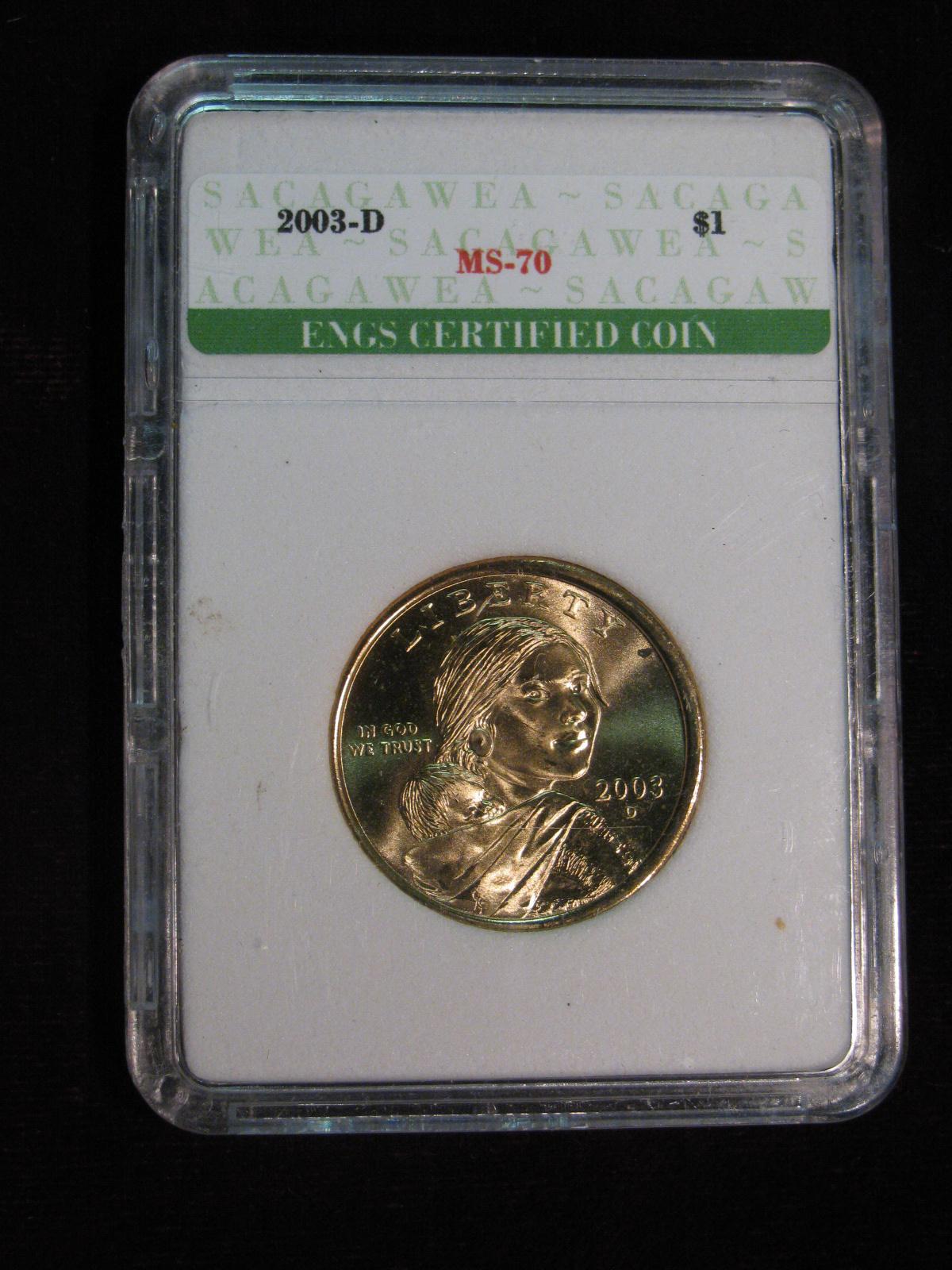 290. 2003 D Sacagawea Dollar ENGS slabbed MS 70. Est. Value $25.00