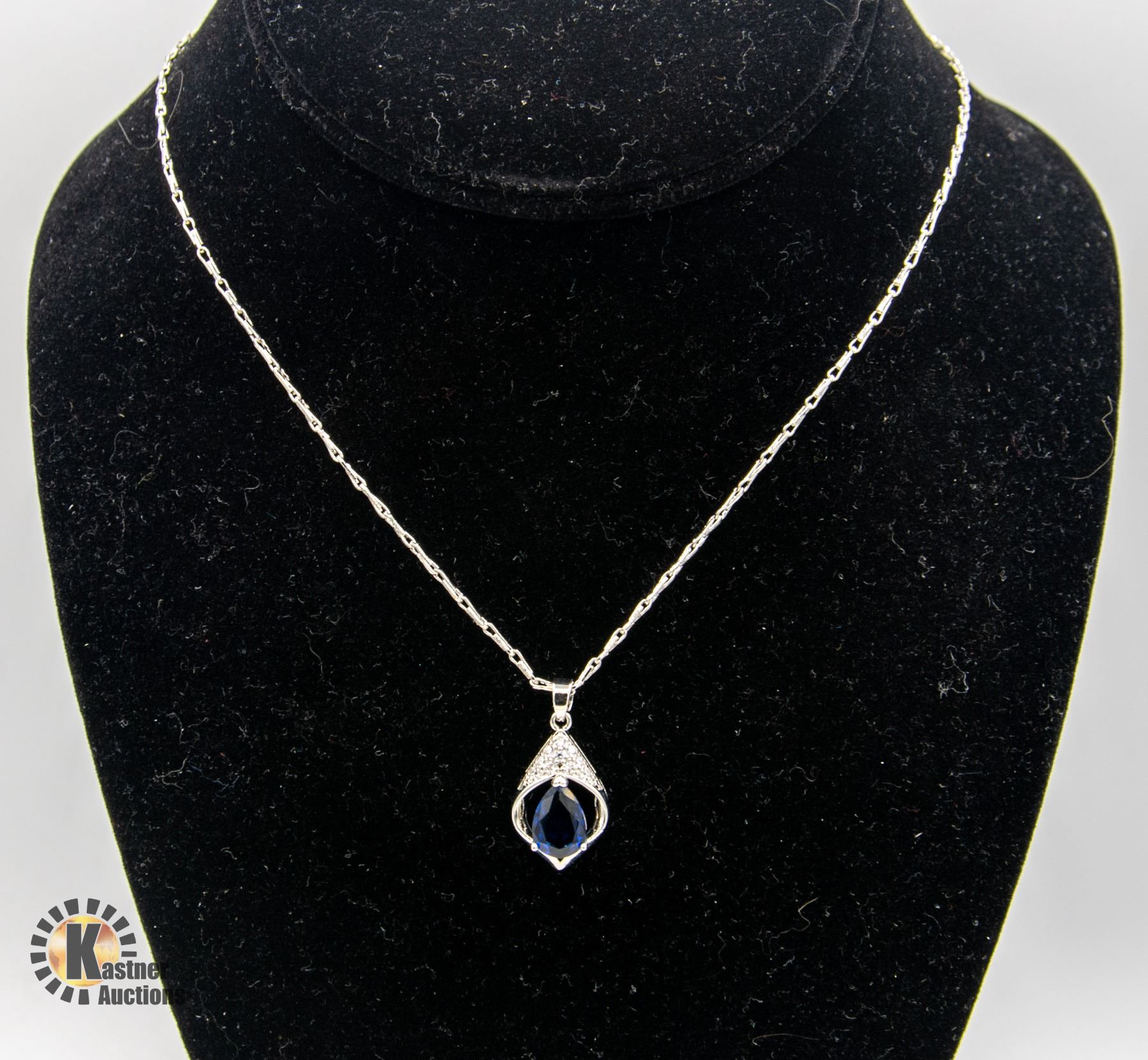 PENDANT WITH PAVE SET CLEAR STONES ON 45 CM DESIGNER NECKLACE WITH LOBSTER CLASP